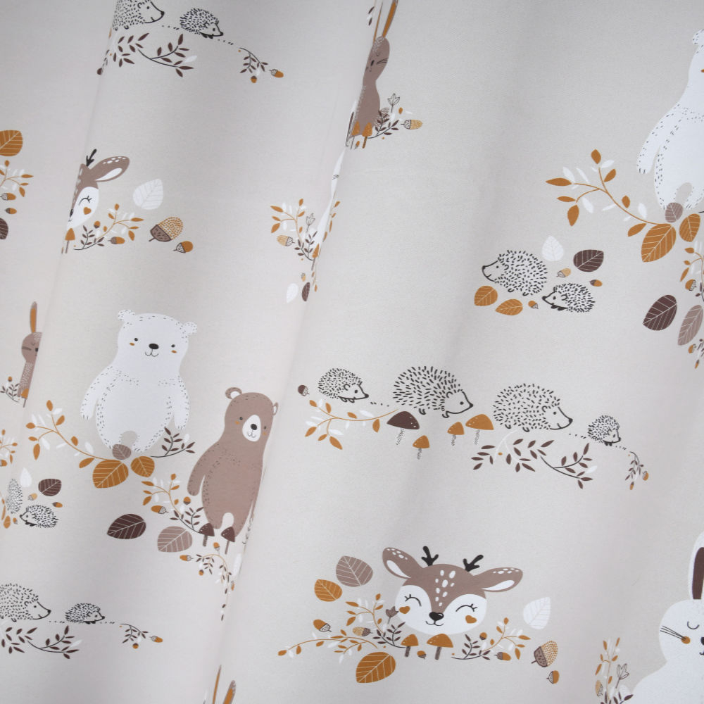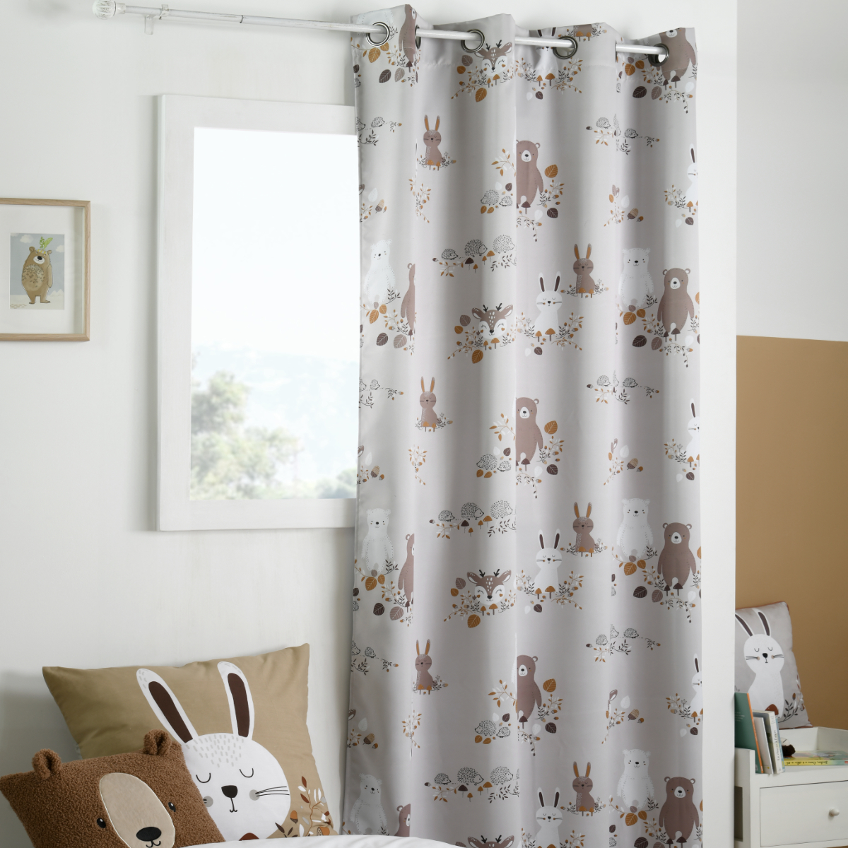 Κουρτίνα για το παιδικό δωμάτιο σε μπεζ-γκρι χρώμα και σχέδιο ζωάκια με λευκές-μαύρες λεπτομέρειες. Είναι κατασκευασμένη από 100% polyester και έχει ενσωματωμένα τρουκς διαμέτρου 4cm για εύκολη τοποθέτηση. Το ύφασμα είναι blackout που δεν επιτρέπει καθόλου φως να περάσει στον χώρο. Συνδυάστε την με τα υπόλοιπα προϊόντα του ίδιου σχεδίου για ένα ολοκληρωμένο αποτέλεσμα στο παιδικό ή το βρεφικό δωμάτιο.