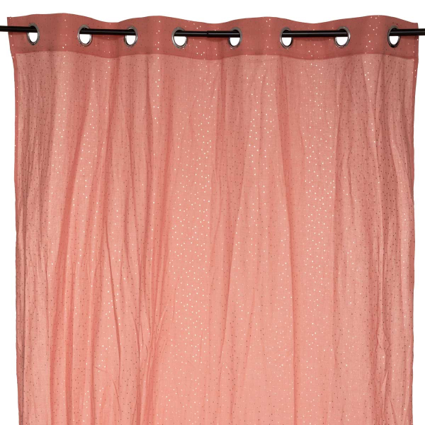 Παιδική κουρτίνα σε χρώμα τερακότας με χρυσές μεταλλιζέ λεπτομέρειες. Το ύφασμά της είναι 78% Polyester και 22% βαμβάκι, μέτριας σκίασης. Διαθέτει ενσωματωμένα τρουκς διαμέτρου 4cm για εύκολη τοποθέτηση. Κρεμάστε την και ανανεώστε εύκολα και οικονομικά το παιδικό ή βρεφικό δωμάτιο.
