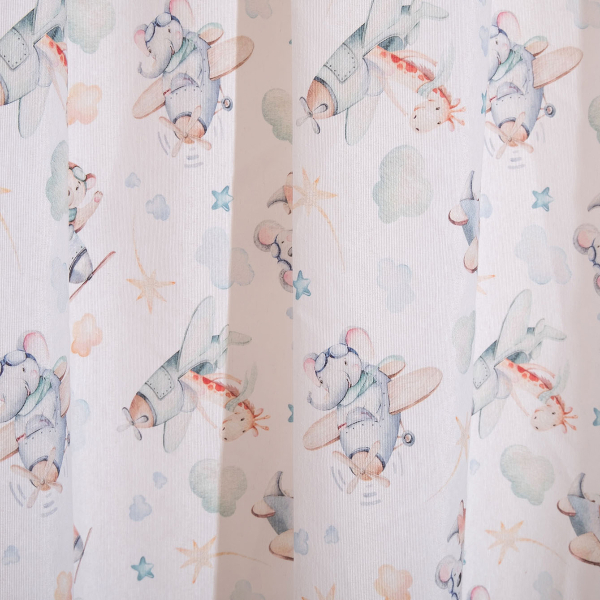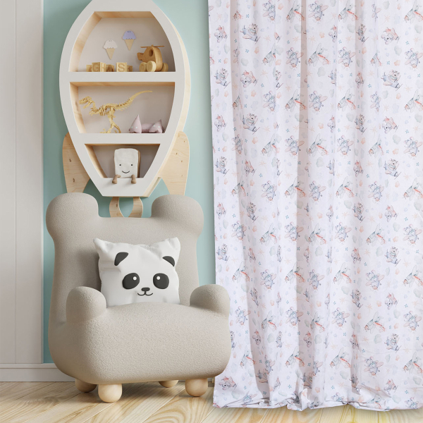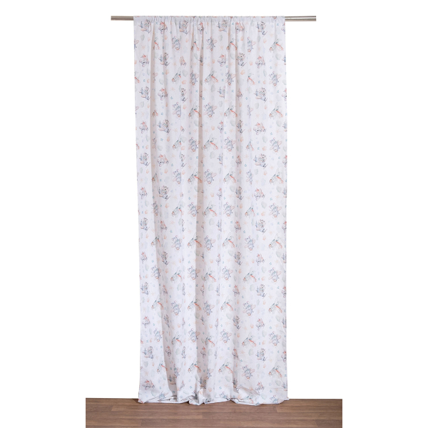 Φύλλο κουρτίνας σε απαλό λευκό φόντο, πολύχρωμες λεπτομέρειες και σχέδιο παιδικές φιγούρες από την εταιρία Anna Riska. Κατασκευασμένη από 70% βαμβάκι-30% polyester βάρους 160gsm είναι ιδανική για να στολίσει το βρεφικό-παιδικό δωμάτιο με ποιότητα και στυλ. Με τρέσα στο επάνω μέρος, που δίνει την ιδανική σούρα.