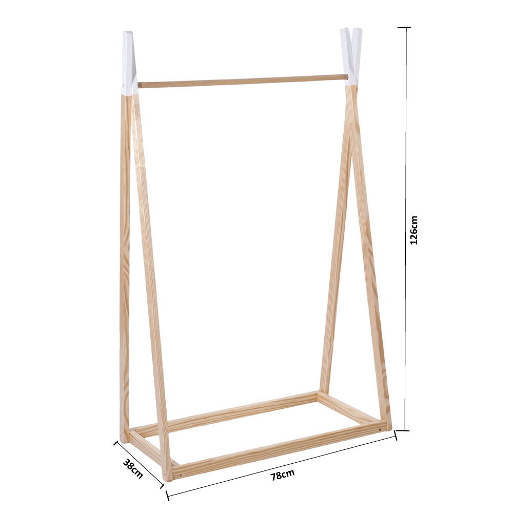 Ξύλινη κρεμάστρα δαπέδου σε σχήμα tippy για το βρεφικό ή παιδικό δωμάτιο. Είναι κατασκευασμένη από ξύλο πεύκου σε φυσική απόχρωση και λευκές λεπτομέρειες. Έχει στιβαρή κατασκευή και σταθερή βάση ώστε να τοποθετήσετε κρεμάστρες με τα πράγματα του παιδιού σας. * Το προϊόν έρχεται αμοντάριστο.*