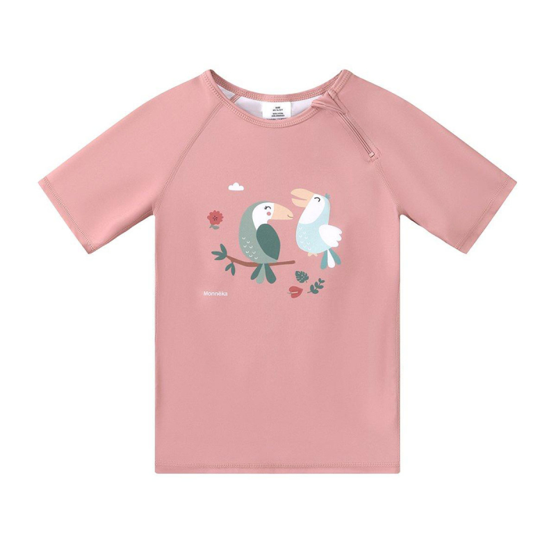 Παιδική μπλούζα θαλάσσης με προστασία UV από την εταιρεία Monneka. Έχει ροζ χρώμα, σχέδιο με toucan και κόκκινες-πράσινες-εκρού λεπτομέρειες. Έχει σύνθεση από 80% Nylon-20% Spandex με δείκτη προστασίας UPF50+ που μπλοκάρει το 97,5% όλων των επιβλαβών ακτίνων UVA και UVB, σύμφωνα με το πρότυπο EN13758-2. Με επίπεδες ραφές που μειώνουν την τριβή με το δέρμα και φερμουάρ στο πλάι για εύκολη εφαρμογή. Στεγνώνει γρήγορα, είναι ελαφρύ και προστατεύει το παιδί σας από την βλαβερή ακτινοβολία. Διατίθεται σε 4 μεγέθη: 6-12 μηνών για παιδιά με ύψος 68-74εκ., 12-18 μηνών για παιδιά με ύψος 80-86εκ., 2-3 ετών για παιδιά με ύψος 92-98εκ. και 4-5 ετών για παιδιά με ύψος 104-110εκ. Συνδυάστε την με τα υπόλοιπα προϊόντα του ίδιου σχεδίου για ένα ολοκληρωμένο σετ.