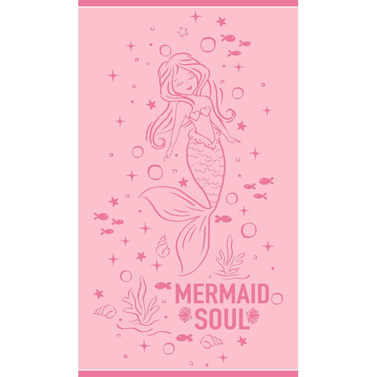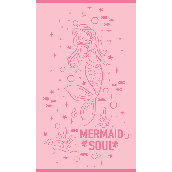 Παιδική πετσέτα θαλάσσης σε ροζ χρώμα και σχέδιο γοργόνα από την εταιρεία Melinen. Η σύνθεσή της είναι 100% βαμβάκι ζακάρ βάρους 580 gsm, που την καθιστά απαλή και ιδιαίτερα απορροφητική. Στιλάτη και ποιοτική πετσέτα για το μπάνιο του παιδιού σας στην παραλία.