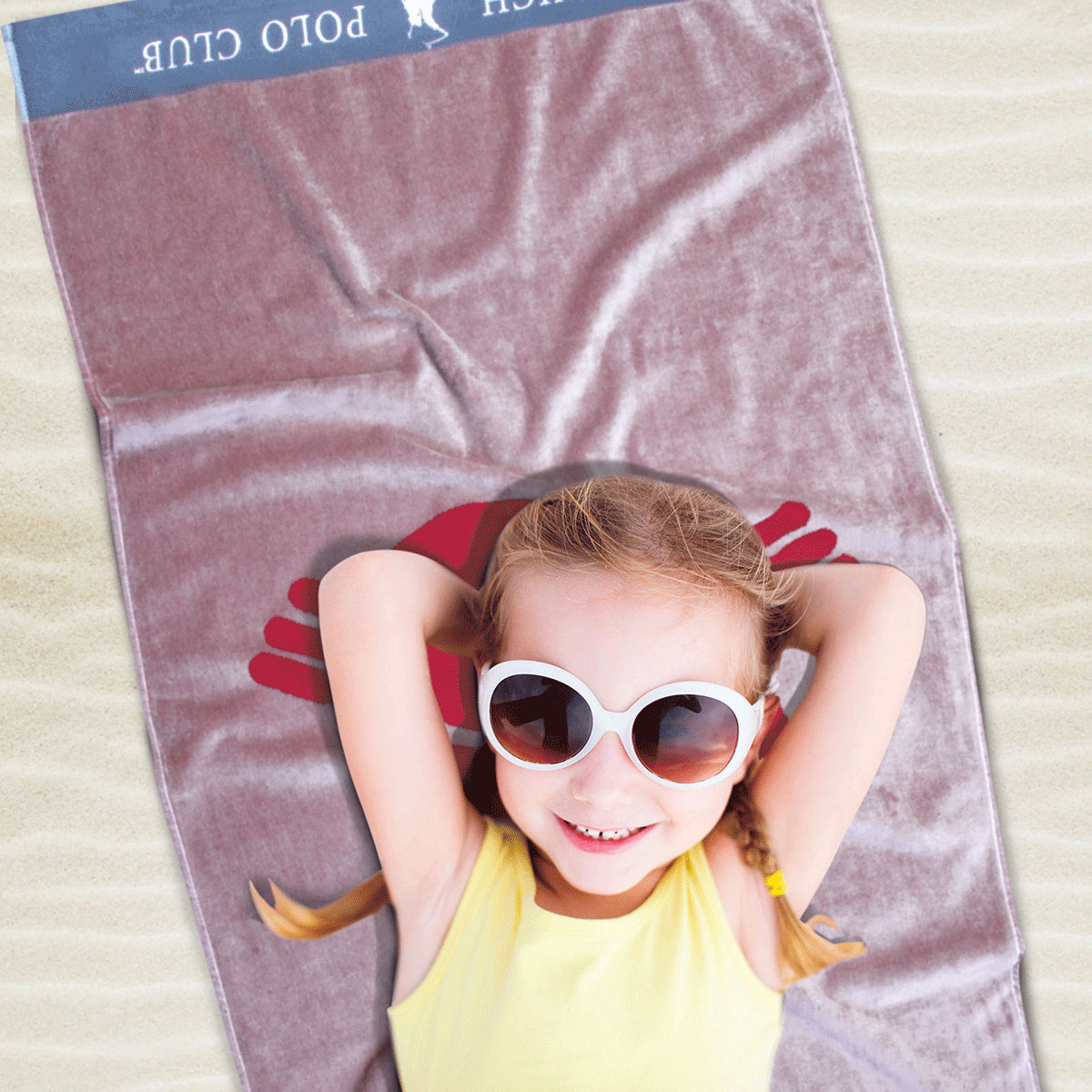 Παιδική πετσέτα θαλάσσης από τον οίκο Greenwich Polo Club που προσφέρει ποιότητα, στυλ και πολυτέλεια. Έχει μπεζ φόντο, κόκκινες λεπτομέρειες και το λογότυπο της εταιρίας και σχέδιο ζωάκι στο κέντρο. Είναι κατασκευασμένη από 100% υποαλλεργικό βαμβάκι σε ύφανση jacquard και βάρος 420 gsm. Στιλάτη και ποιοτική πετσέτα για το μπάνιο του παιδιού σας στην παραλία.