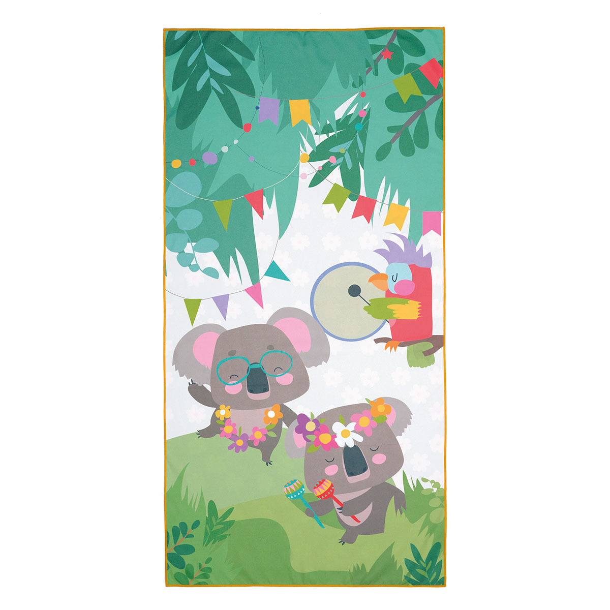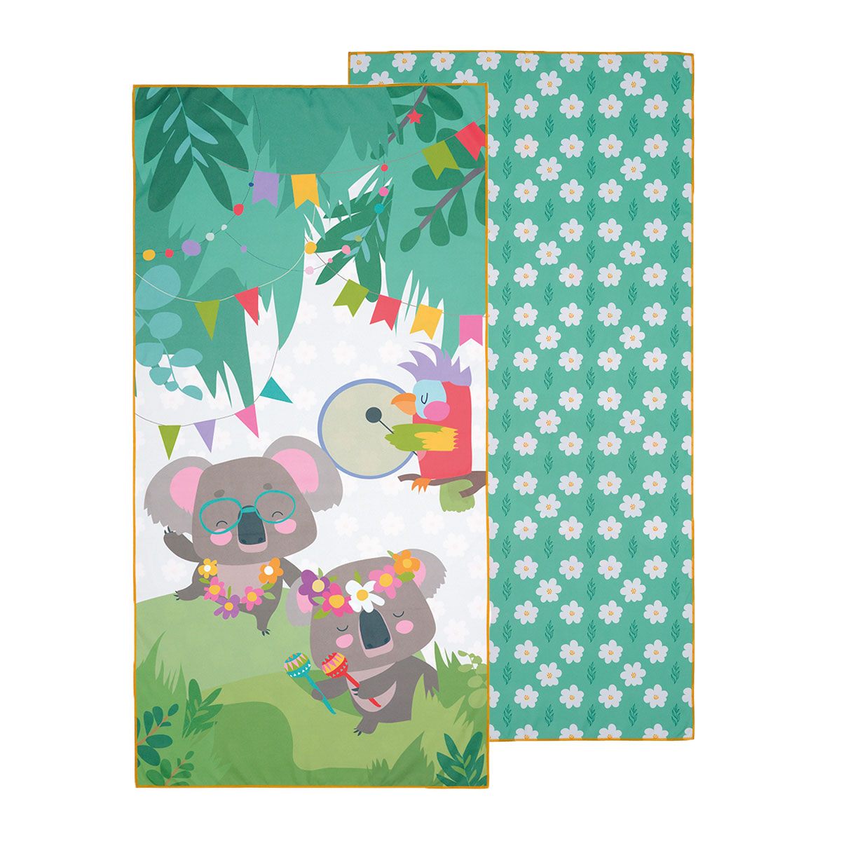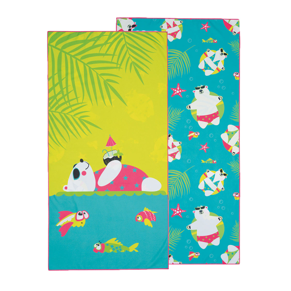 Παιδική πετσέτα μικροϊνών από την εταιρεία Kentia σε βεραμάν-πράσινες αποχρώσεις με πολύχρωμες λεπτομέρειες και σχέδιο κοάλα. Η πίσω όψη είναι βεραμάν με λευκές-ροζ λεπτομέρειες και φλοράλ σχέδιο. Είναι κατασκευασμένη από microfiber σύνθεσης 80% polyester και 20% πολυαμίδιο με βάρος 190gsm. Είναι απαλή, ελαφριά, υπέρ-απορροφητική και στεγνώνει γρήγορα. Ιδανική επιλογή ως πετσέτα θαλάσσης, πετσέτα γυμναστηρίου, και γενικά ως πετσέτα για κάθε αθλητική δραστηριότητα.