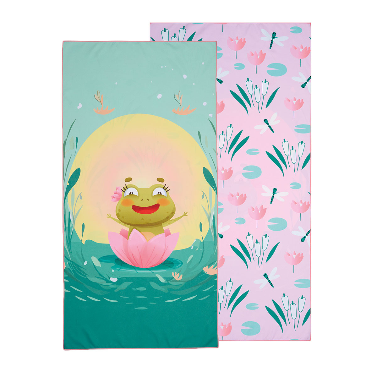 Παιδική πετσέτα μικροϊνών από την εταιρεία Kentia σε βεραμάν χρώμα με κίτρινες-ροζ λεπτομέρειες και σχέδιο ζωάκια. Η πίσω όψη είναι λιλά με πράσινες-βεραμάν-ροζ λεπτομέρειες και φλοράλ σχέδιο. Είναι κατασκευασμένη από microfiber σύνθεσης 80% polyester και 20% πολυαμίδιο με βάρος 190gsm. Είναι απαλή, ελαφριά, υπέρ-απορροφητική και στεγνώνει γρήγορα. Ιδανική επιλογή ως πετσέτα θαλάσσης, πετσέτα γυμναστηρίου, και γενικά ως πετσέτα για κάθε αθλητική δραστηριότητα.