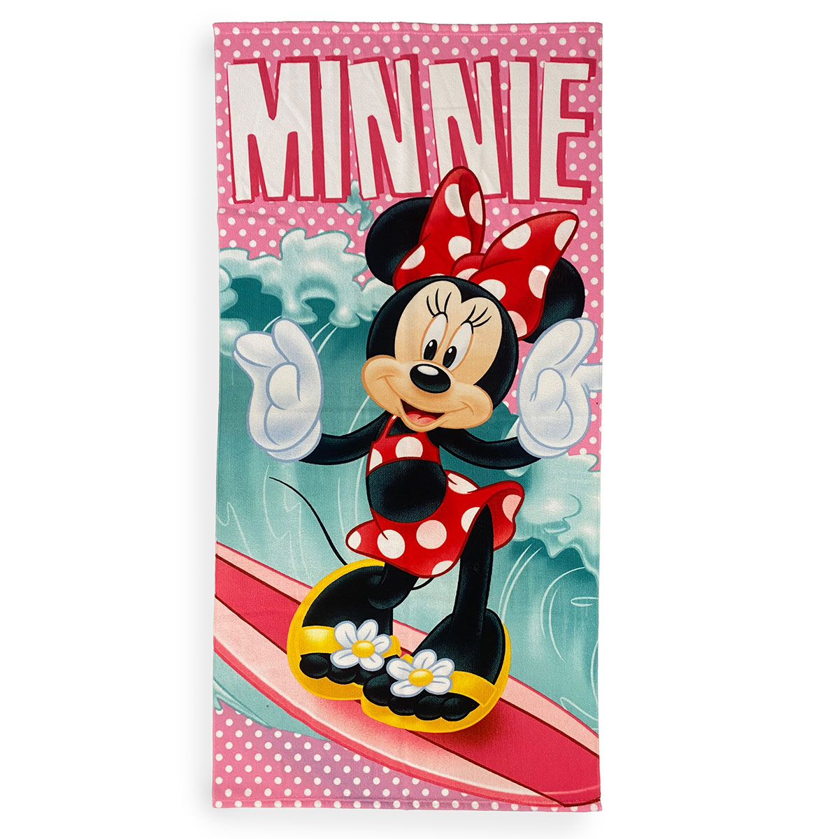 Πετσέτα θαλάσσης σε ροζ-κόκκινο χρώμα, με μαύρες-κίτρινες λεπτομέρειες από την εταιρεία Dimcol. Έχει παιδικό σχέδιο με τον αγαπημένο ηρωίδα Minnie, το οποίο έχει τυπωθεί με την μέθοδο της ψηφιακής εκτύπωσης. Είναι κατασκευασμένη από 100% Polyester που την καθιστά απαλή και ελαφριά. Με ποιστοποίηση OEKO-TEX. Είναι ιδανική επιλογή για την παραλία.
