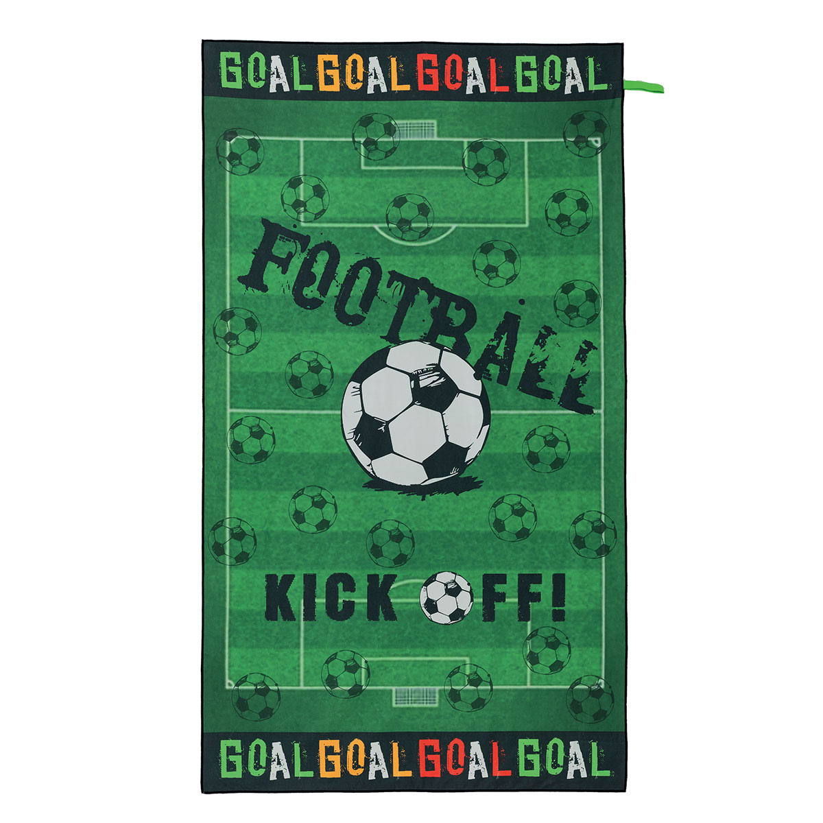 Παιδική πετσέτα θαλάσσης από την εταιρεία Palamaiki. Σε πράσινο χρώμα με μαύρες-πολύχρωμες λεπτομέρειες και μοντέρνο σχέδιο τυπωμένο με την μέθοδο της ψηφιακής εκτύπωσης. Είναι κατασκευασμένη από 100% microfiber που προσφέρει μοναδική απορροφητικότητα. Ιδανική καλοκαιρινή επιλογή για να χαρίσει χαρά και όρεξη για περισσότερο παιχνίδι στους μικρούς μας φίλους.