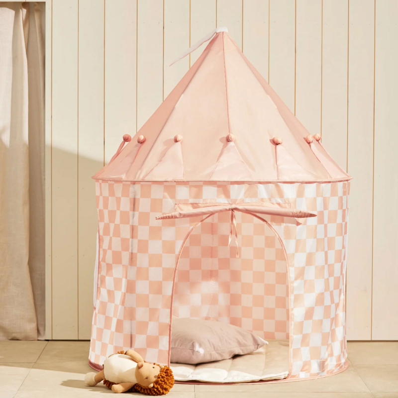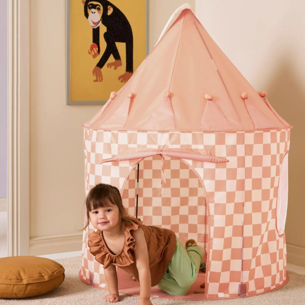 Παιδική σκηνή για παιχνίδια γεμάτα περιπέτειες και ενθουσιασμό από την εταιρεία Kids Concept. Διαθέτει παράθυρα και πόρτα που μπορεί να είναι κλειστή ή ανοιχτή, καθώς διαθέτει κορδελάκια για να δεθούν. Το ύφασμα της σκηνής είναι πολυεστερικό σε ροζ απόχρωση και καρό σχέδιο. Κατάλληλη για τοποθέτηση σε εσωτερικό χώρο. Για ηλικίες από 3+ ετών. Περιλαμβάνει πρακτική τσάντα αποθήκευσης. Δεν περιλαμβάνονται τα μαξιλάρια.