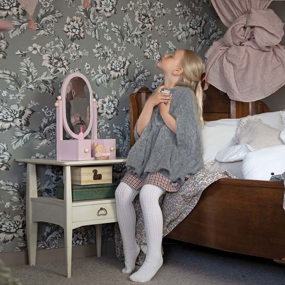 Ξύλινη τουαλέτα ομορφιάς με καθρέφτη και συρτάρια της σουηδικής εταιρείας Jabadabado. Έχει ροζ χρώμα και λεπτομέρειες σε φυσικό χρώμα ξύλου. Ο καθρέφτης έχει ανάκληση για να μπορείτε να ρυθμίσετε τη θέση του, ένα ραφάκι ανάμεσα στα συρτάρια για να ακουμπήσει το παιδί τη βούρτσα του και 2 συρτάρια που μπορούν να χρησιμοποιηθούν σαν αποθηκευτικός χώρος. Στα πλάγια έχει στρογγυλά κρεμαστράκια που μπορούν να τοποθετηθούν τα κολιέ, τα βραχιόλια και οι στέκες. Ξεχωριστή λύση και για την διακόσμηση του παιδικού δωματίου. Κατάλληλο για ηλικίες 3+ ετών.