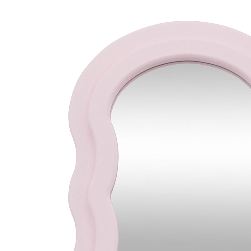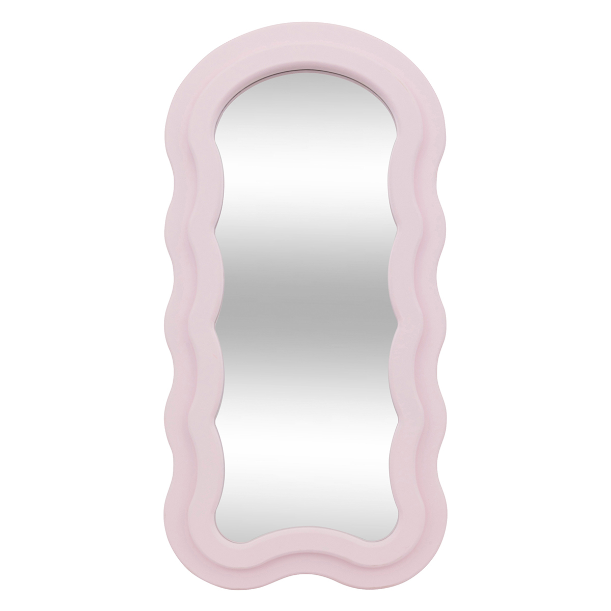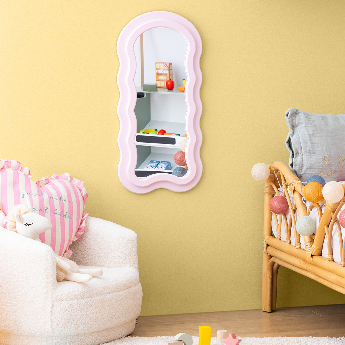 Επιτοίχιος καθρέφτης ιδανικός για το βρεφικό και παιδικό δωμάτιο. Ο σκελετός είναι κατασκευασμένος από ξύλο MDF_E1 σε ροζ χρώμα με κυματιστό σχέδιο. Ιδανικός καθρέφτης που θα ενισχύσει την διακόσμηση του δωματίου. Συνδυάστε τον με τα υπόλοιπα είδη της ίδιας συλλογής για ένα ολοκληρωμένο αποτέλεσμα στο χώρο σας.