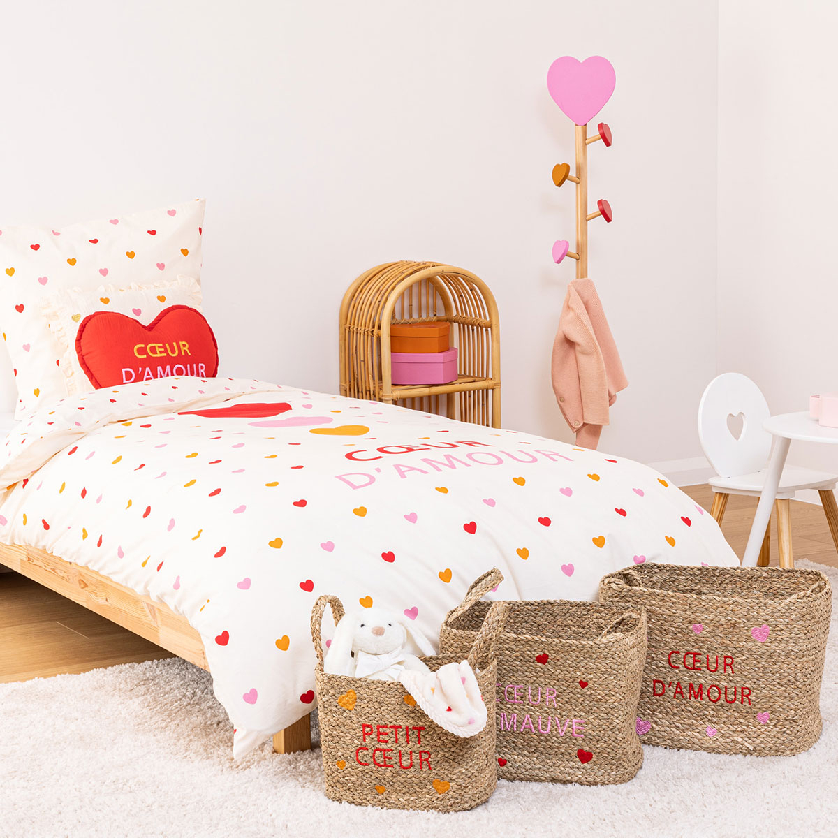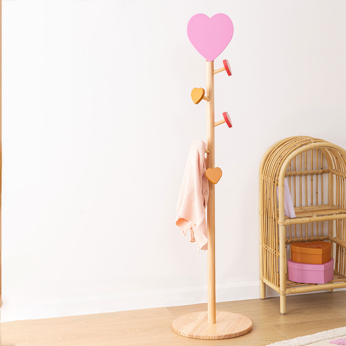 Καλόγερος με σχέδιο καρδούλες για το βρεφικό ή παιδικό δωμάτιο. Είναι κατασκευασμένος από ξύλο ελάτου και MDF_E1 σε μπεζ απόχρωση με ροζ, πορτοκαλί και κόκκινες λεπτομέρειες. Διαθέτει 5 άγκιστρα για να κρεμάσετε τα πράγματα του παιδιού σας και να κρατήσετε τακτοποιημένο το δωμάτιό του.