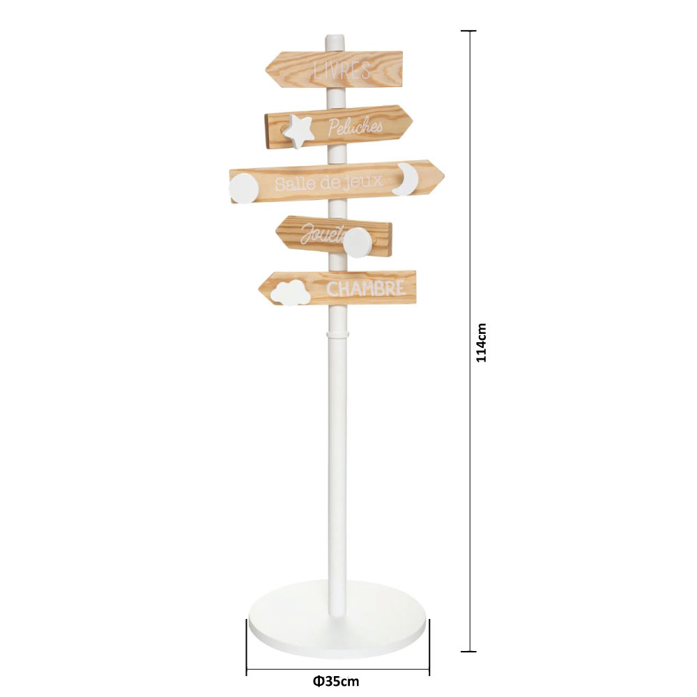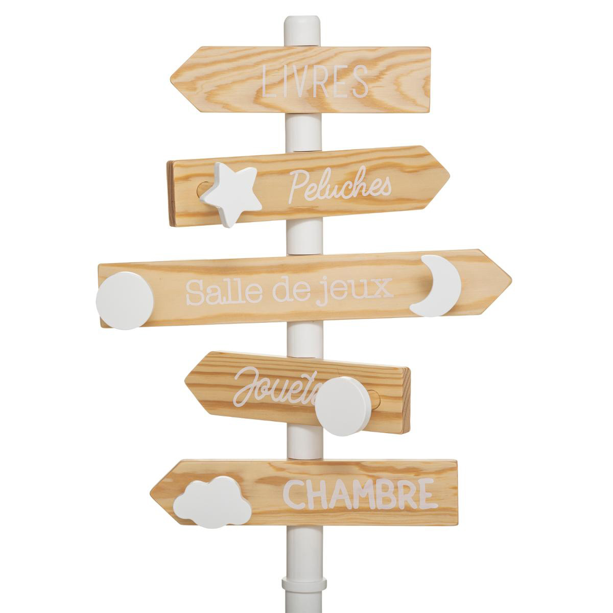 Καλόγερος σε σχήμα πινακίδας για το βρεφικό ή παιδικό δωμάτιο. Είναι κατασκευασμένος από ξύλο mdf_E1 σε φυσική απόχρωση και λευκές λεπτομέρειες. Διαθέτει 5 άγκιστρα για να κρεμάσετε τα πράγματα του παιδιού σας και να κρατήσετε τακτοποιημένο το δωμάτιό του.
