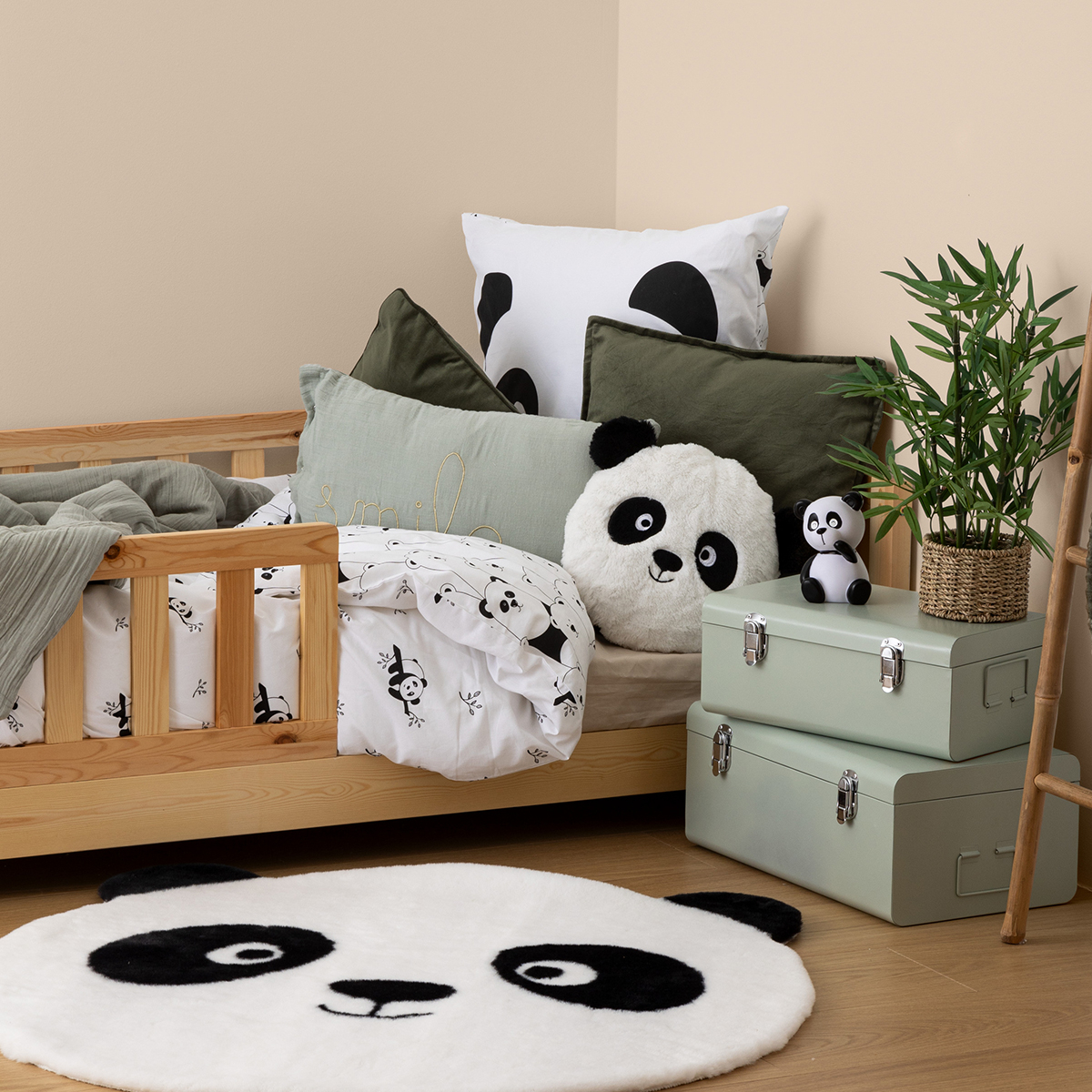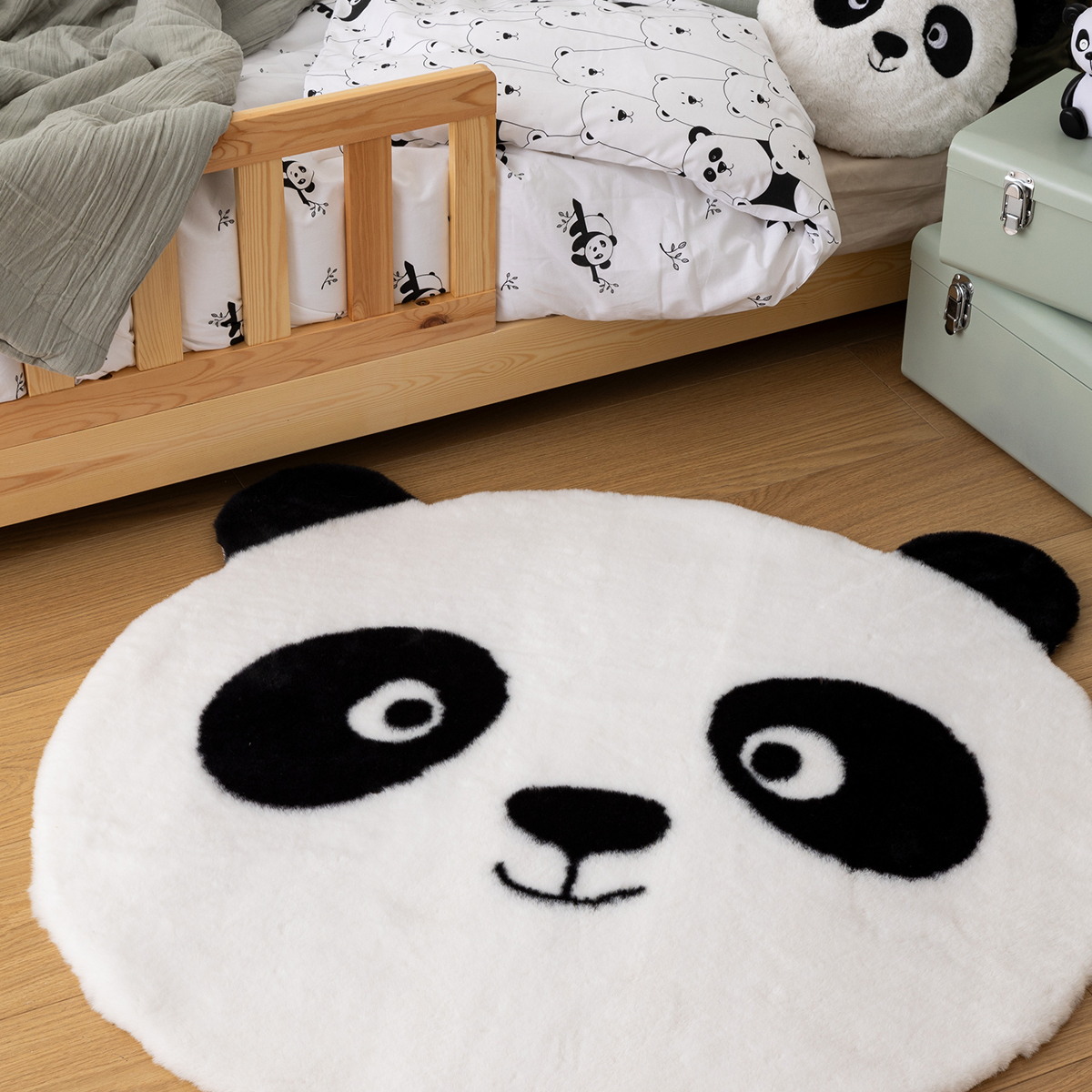 Γούνινο παιδικό χαλί μηχανής με διάμετρο 100εκ. για το βρεφικό ή παιδικό δωμάτιο. Είναι κατασκευασμένο από 100% polyester σε λευκό χρώμα με μαύρες λεπτομέρειες και στρογγυλό σχήμα με σχέδιο πάντα. Εξαιρετικά απαλή υφή, που προσφέρει μοναδική αίσθηση ζεστασιάς και πολυτέλειας. Τα παιδιά θα λατρέψουν την μοναδικά απαλή επιφάνεια του. Είναι κατάλληλο για ατελείωτες ώρες παιχνιδιού. Ιδανικό για να χαρίσει μια παιχνιδιάρικη διάθεση στο δωμάτιο του παιδιού σας καθόλη τη διάρκεια του χρόνου.