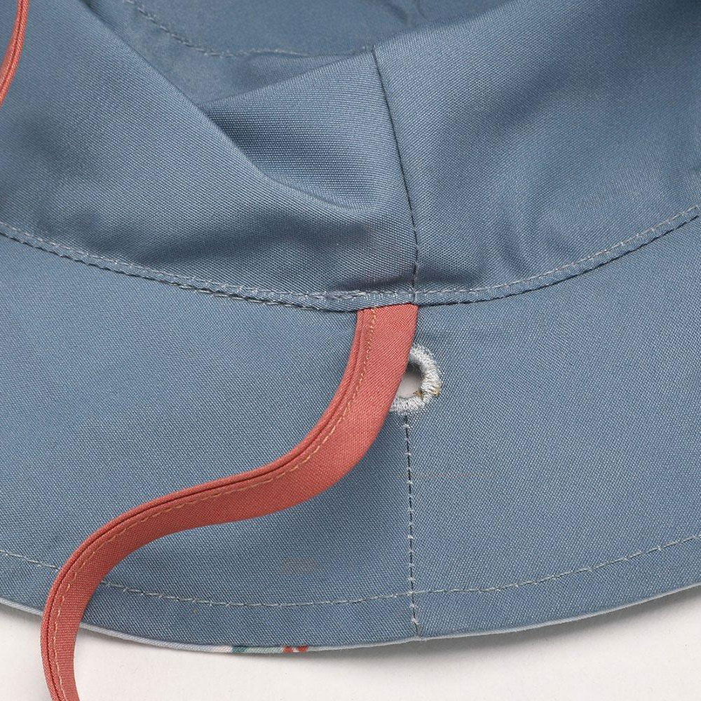 Παιδικό καπέλο διπλής όψης από την εταιρεία Monneka. Η μία πλευρά είναι σε γαλάζιο χρώμα, μοντέρνο σχέδιο και λευκές-μπεζ-βεραμάν-κόκκινες λεπτομέρειες ενώ η άλλη είναι μονόχρωμη σε μπλε απόχρωση. Το ύφασμά του είναι από 100% Polyester με δείκτη UPF30+ που προστατεύει το κεφαλάκι του μικρού σας από την βλαβερή ακτινοβολία και στεγνώνει γρήγορα. Διαθέτει κορδονάκια που δένουν στο πηγούνι για να μένει σταθερό και περιμετρικό γείσο για επιπλέον προστασία. Κατάλληλο για παιδιά 6-18 μηνών με περίμετρο κεφαλιού 46-49cm. Συνδυάστε το με τα υπόλοιπα προϊόντα του ίδιου σχεδίου για ένα ολοκληρωμένο σετ.