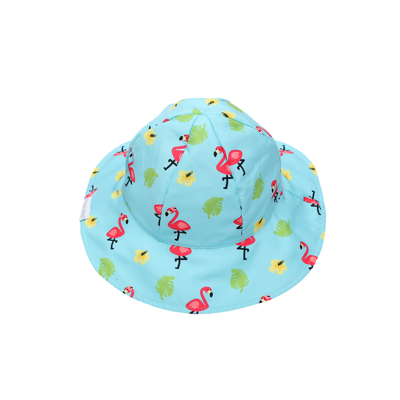 Παιδικό καπέλο διπλής όψης από την εταιρία FlapjackKids. Η μία όψη έχει γαλάζιο χρώμα, πολύχρωμες λεπτομέρειες και σχέδιο φλαμίνγκο και η άλλη όψη έχει ροζ χρώμα, πολύχρωμες λεπτομέρειες και μοντέρνο σχέδιο. Είναι ελαφρύ, αδιάβροχο και απαλό, με αντηλιακή προστασία UPF 50+, κατασκευασμένο από 100% polyester. Ιδανικό για την βόλτα, τις εκδρομές κτλ. Διατίθεται σε Small (6-24 μηνών) και σε Medium (2-4 ετών).
