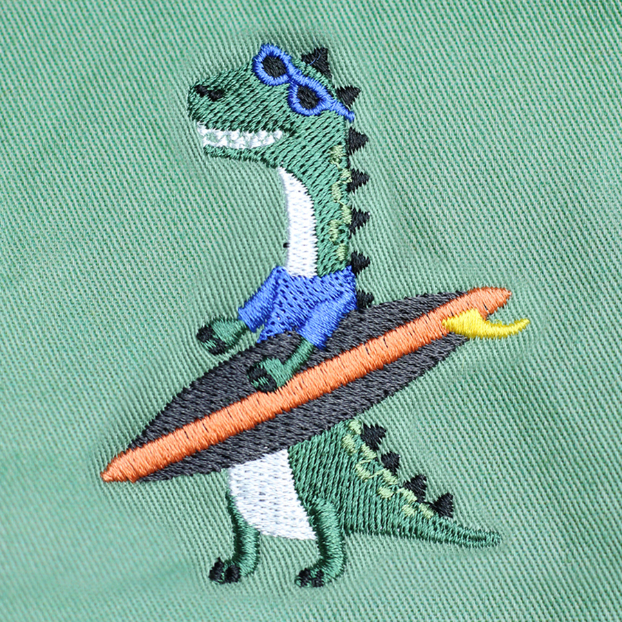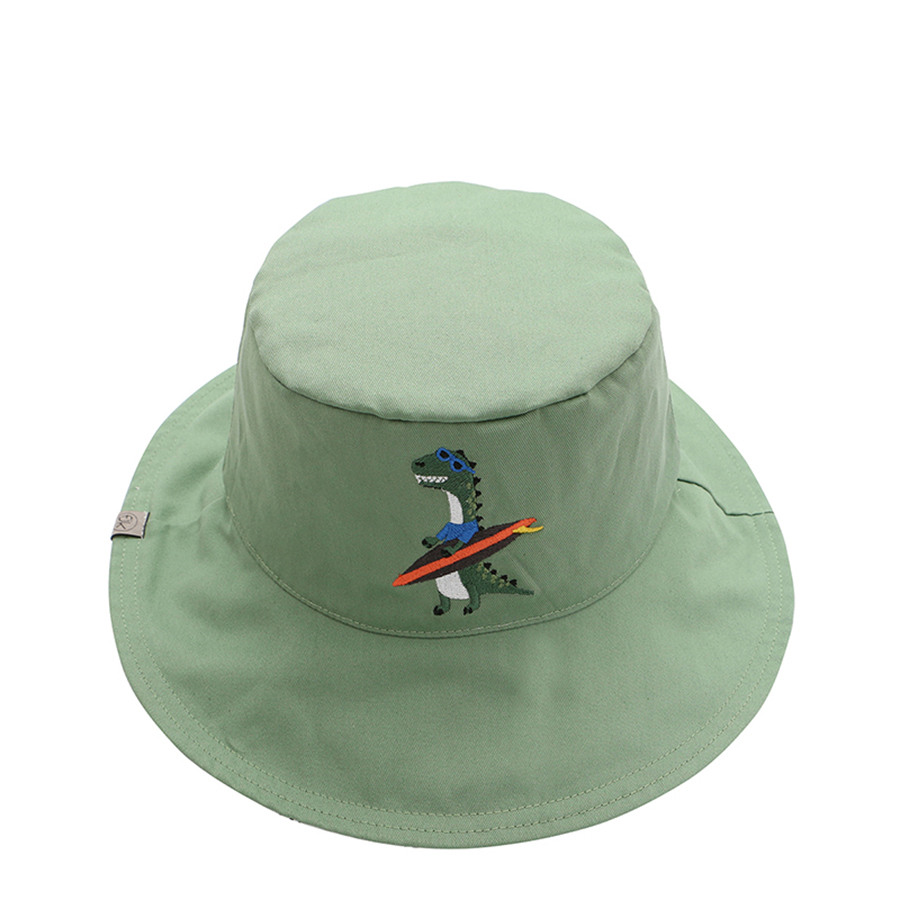 Παιδικό καπέλο διπλής όψης από την εταιρία FlapjackKids. Η μία όψη έχει χακί χρώμα, με λευκές λεπτομέρειες και κεντητό σχέδιο δεινόσαυρο. Η άλλη όψη έχει λευκό φόντο και σχέδιο δεινόσαυρους, που τα χρωματίζει το παιδί σας όπως εκείνο θέλει, οι μαρκαδόροι που περιλαμβάνονται αφαιρούνται με το πλύσιμο. Κατασκευασμένο από 100% βαμβάκι, με αντηλιακή προστασία UPF 50+. Διαθέτει ρυθμιζόμενο λουρί για να προσαρμόζεται σε όλα τα κεφαλάκια. Ιδανικό για την βόλτα, τις εκδρομές κτλ. Διατίθεται για ηλικίες 3-4 ετών και ηλικίες 4-6 ετών.