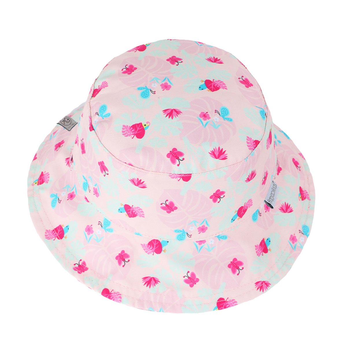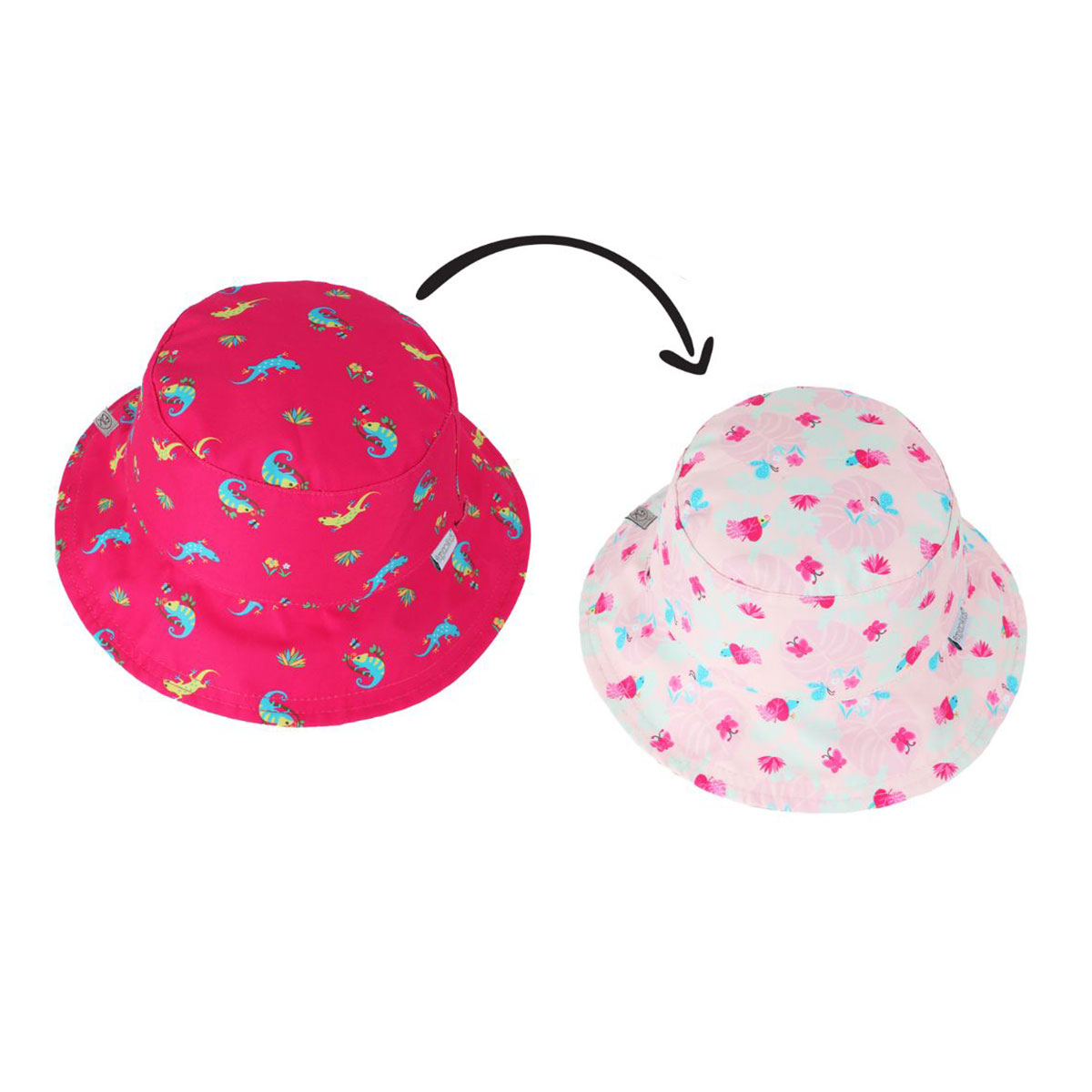 Παιδικό καπέλο διπλής όψης από την εταιρία FlapjackKids. Η μία όψη έχει φούξια χρώμα και η άλλη ροζ με ζωάκια στο σχέδιο. Είναι ελαφρύ, αδιάβροχο και απαλό, με αντηλιακή προστασία UPF 50+. Κατασκευασμένο από 100% βαμβάκι. Ιδανικό για την βόλτα, τις εκδρομές κτλ. Διατίθεται σε Small (6-24 μηνών) με περιφέρεια 51εκ. και σε Medium (2-4 ετών) με περιφέρεια 54εκ.