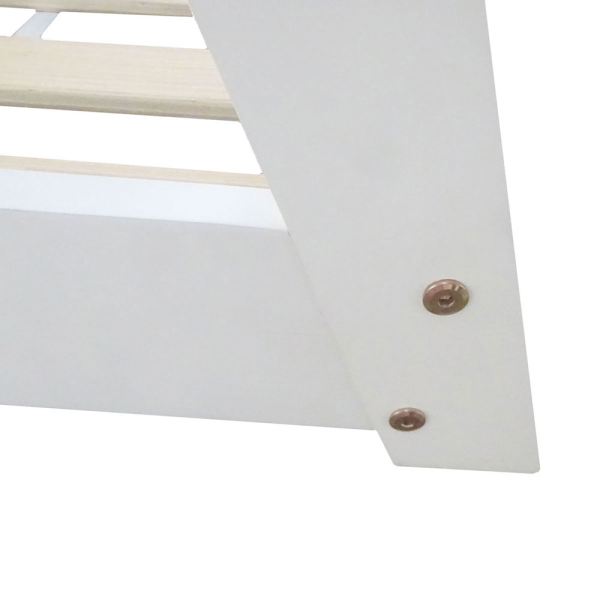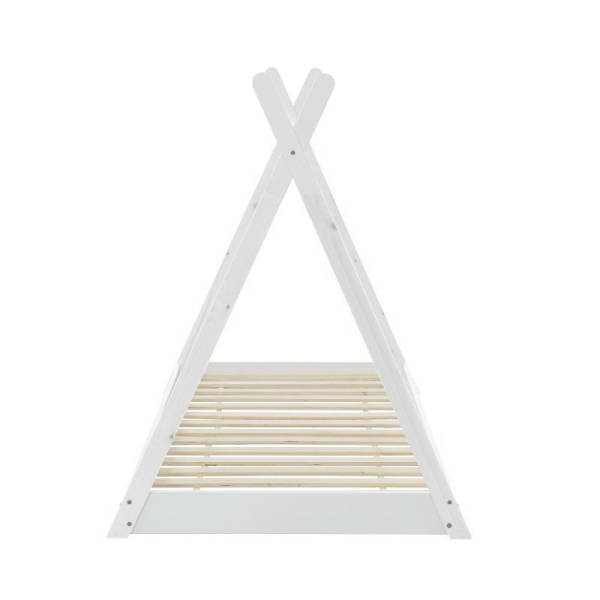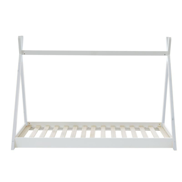 Κρεβάτι Montessori σε σχήμα σκηνής. Με την βάση του πολύ κοντά στο πάτωμα, διευκολύνει την κίνηση του παιδιού στο δωμάτιο, ενθαρρύνοντας τη δημιουργικότητα και την αυτονομία του. Το πρωτότυπο σχήμα του δημιουργεί ένα διασκεδαστικό περιβάλλον που θα λατρέψει το παιδί σας. Δέχεται στρώμα 90x200 (Δεν περιλαμβάνεται). Είναι κατασκευασμένο από ξύλο έλατου σε λευκό χρώμα και οι τάβλες στο κάτω μέρος είναι κόντρα πλακέ. Βάρος αντοχής 100 kg συνολικά μαζί με το στρώμα. *Το προϊόν έρχεται αμοντάριστο και συναρμολογείται βάσει οδηγιών.*