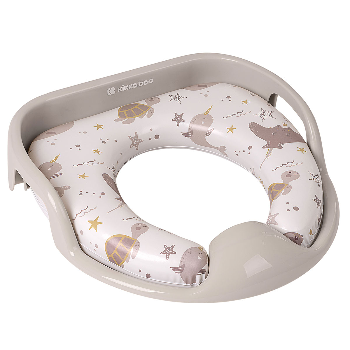 Παιδικό μαλακό κάθισμα τουαλέτας σε λευκό-μπεζ χρώμα και σχέδιο ζωάκια της θάλασσας από την εταιρία Kikka Boo. Επιτρέπει στο παιδί να κάθεται στην τουαλέτα με ασφάλεια. Κατασκευασμένο από υψηλής ποιότητας πλαστικό υλικό, απαλλαγμένο από τοξικά και διαθέτει βοηθητικά χερούλια στο πλάι. Εφαρμόζει στις περισσότερες λεκάνες και έχει αποσπώμενο μαξιλαράκι που προσφέρει μέγιστη άνεση στο παιδί. Κατάλληλο για παιδιά 18-48 μηνών.