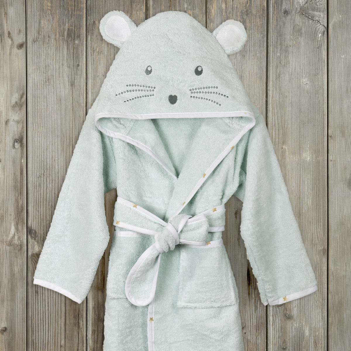 Παιδικό μπουρνούζι από την εταιρεία Nima σε βεραμάν χρώμα με σχέδιο ζωάκια στην κουκούλα και γκρι λεπτομέρειες. Η σύνθεσή του είναι 100% βαμβάκι 380gsm που το καθιστά απαλό και απορροφητικό. Περιμετρικά διαθέτει υφασμάτινο ρέλι. Για ηλικίες 3-4 ετών. Συνδυάστε το με τα υπόλοιπα προϊόντα της ίδιας σειράς.