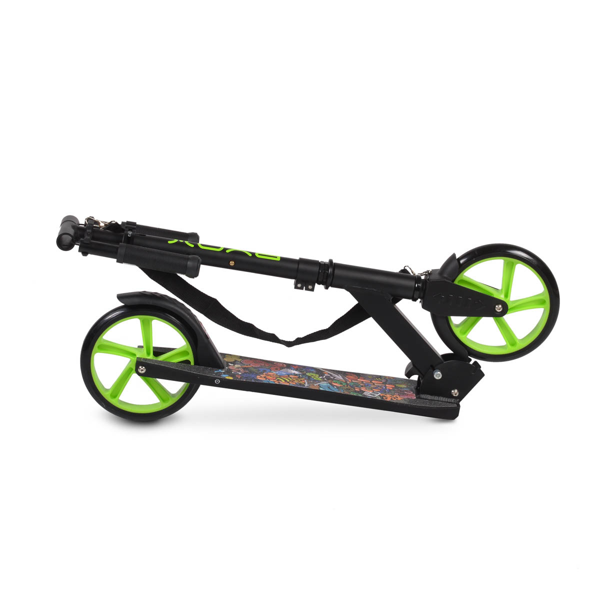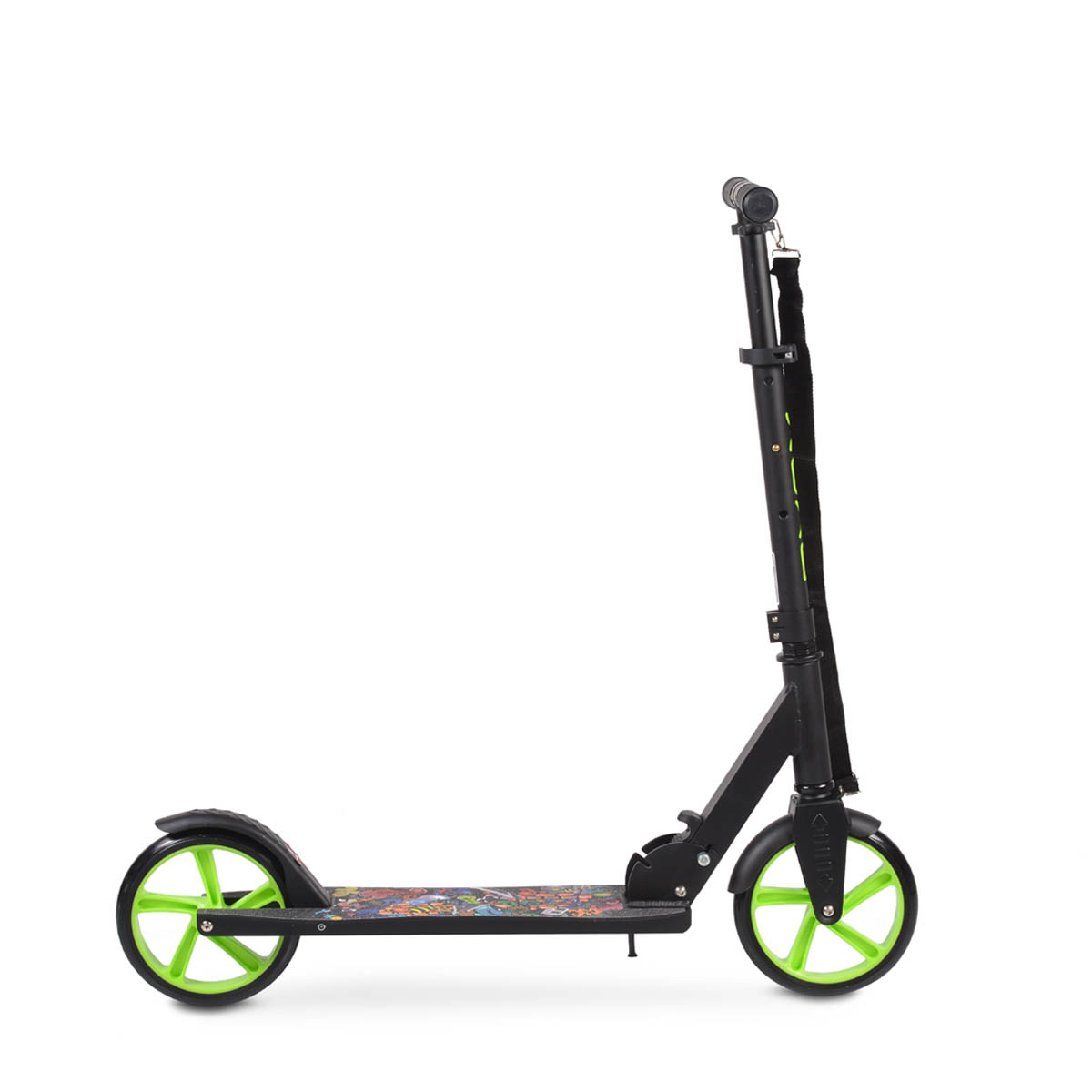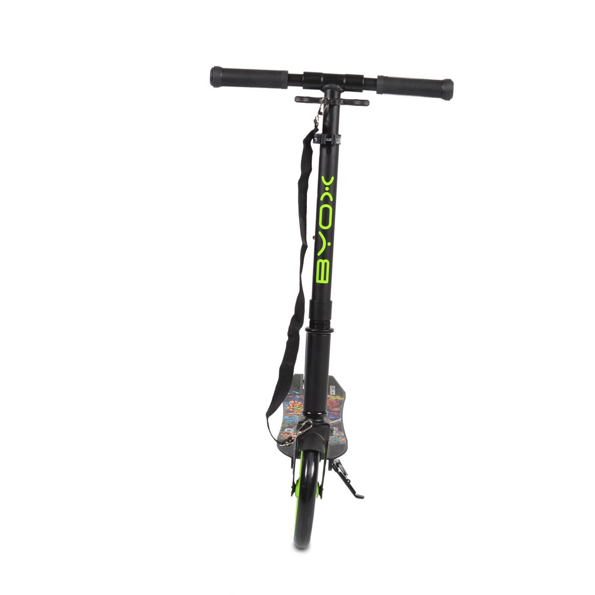 Πατίνι παιδικό από την εταιρεία Byox σε μαύρο χρώμα με λαχανί λεπτομέρειες. Κατάλληλο για παιδιά από 8 ετών και μέγιστο βάρος 100kg.