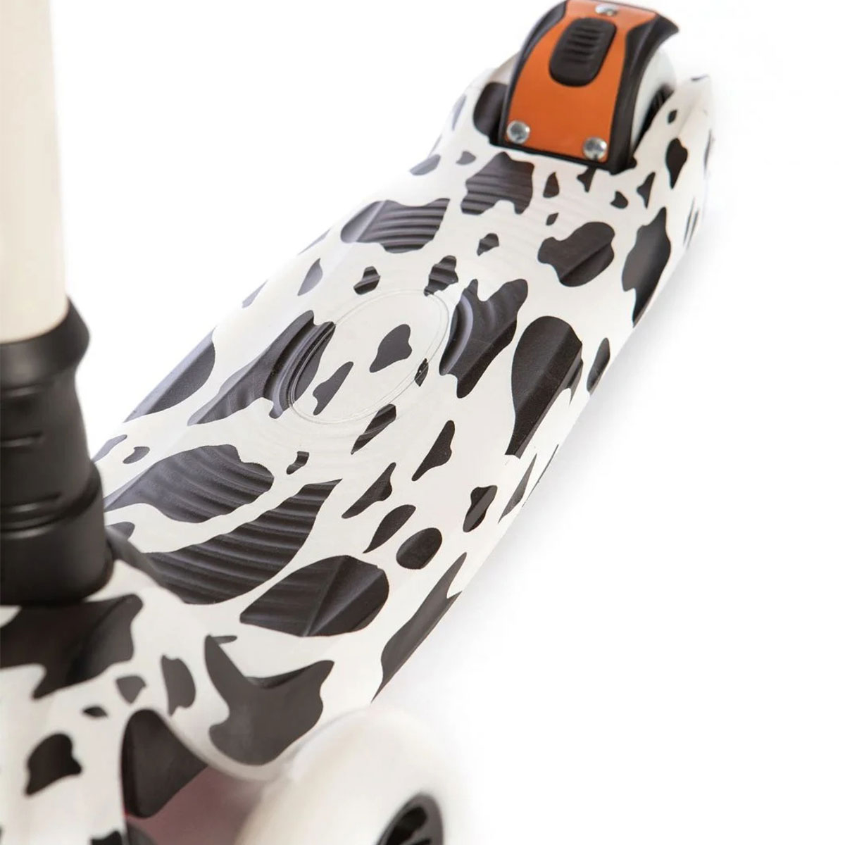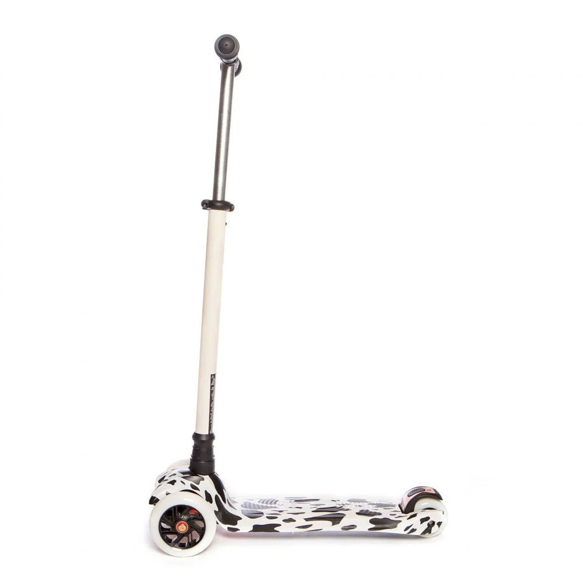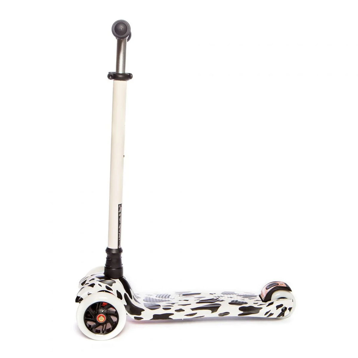 Πατίνι από την εταιρεία Baby Adventure σε λευκό χρώμα με μαύρες λεπτομέρειες και animal print σχέδιο. Ιδανικό για ηλικίες από 3 ετών. Λόγω της σταθερότητάς του, αυτό το προϊόν δίνει στα μικρά σας τη δυνατότητα να κινούνται με ασφάλεια και άνεση. Έχει ρυθμιζόμενο ύψος τιμονιού και λαβή ελέγχου. Το κάθισμα αφαιρείται. Επίσης, διαθέτει οπίσθιο φρένο και φωτιζόμενους τροχούς LED κατά τη διάρκεια της κίνησης. Μέγιστο βάρος 50kg και βάρος πατινιού 2.74kg.