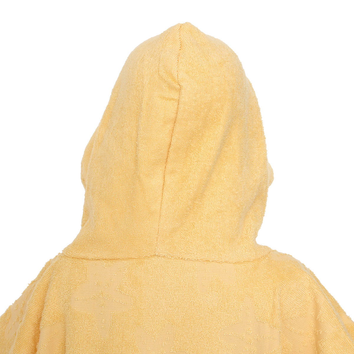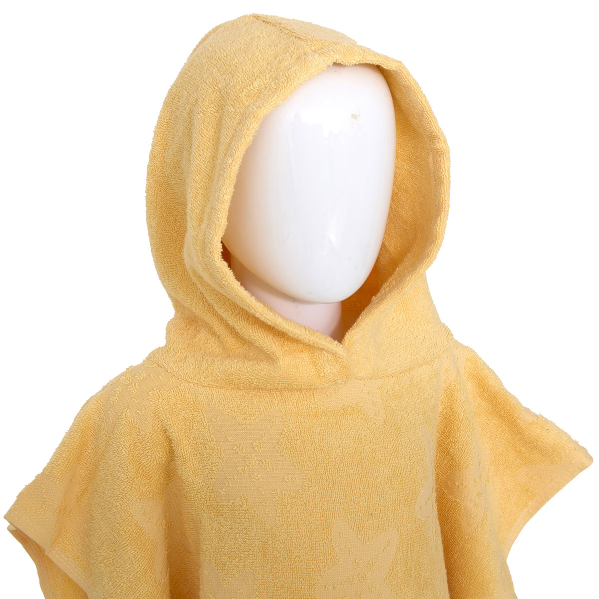 Παιδικό πόντσο σε κίτρινο χρώμα με ανάγλυφους αστερίες. Είναι πετσετέ, κατασκευασμένο από 100% βαμβάκι και είναι ιδιαίτερα απαλό και φιλικό προς το παιδικό δέρμα, με υψηλή απορροφητικότητα. Ο πρακτικός σχεδιασμός του επιτρέπει εύκολη εφαρμογή, ενώ χαρίζει ελευθερία κινήσεων στο παιδί, προσφέροντας άνεση και ζεστασιά. Έρχεται με ασορτί πετσετάκι στο ίδιο χρώμα και σχέδιο. Ιδανικό για το σπίτι, την πισίνα ή τις καλοκαιρινές διακοπές. Με πιστοποίηση OEKO-TEX.