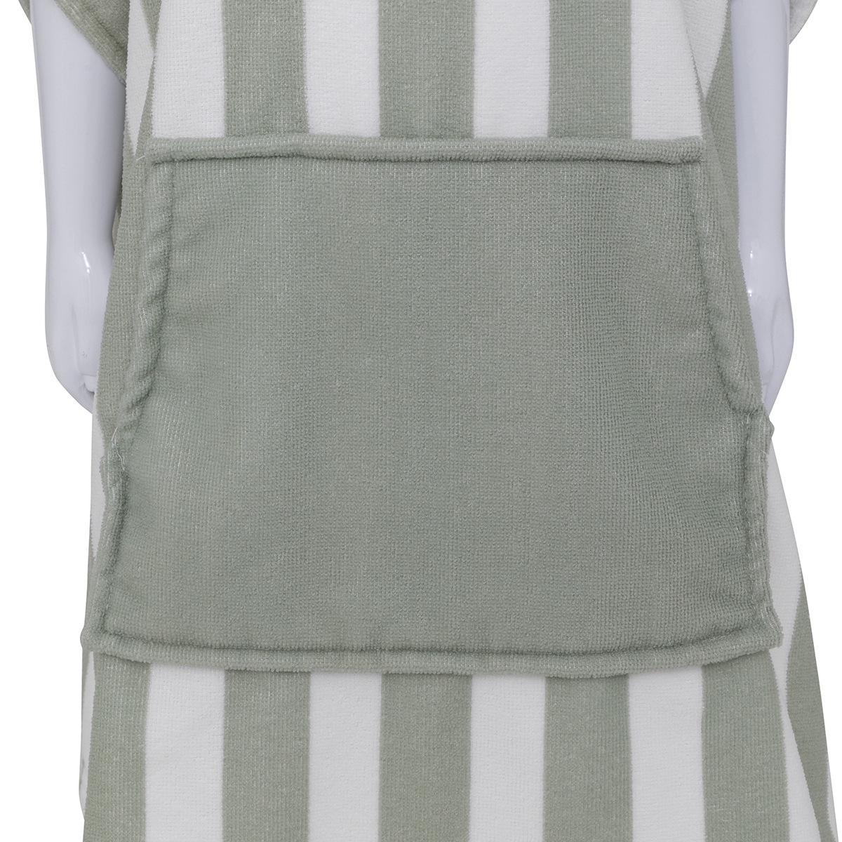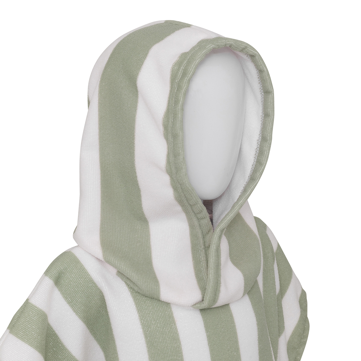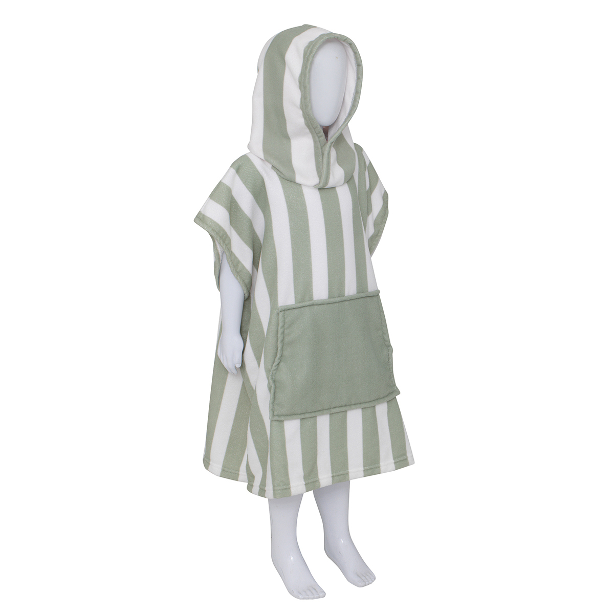 Παιδικό πόντσο με ριγέ σχέδιο σε χακί και λευκό χρώμα. Είναι κατασκευασμένο από 100% polyester που το καθιστά ιδιαίτερα απορροφητικό. Διαθέτει κουκούλα και στεγνώνει γρήγορα. Ιδανική επιλογή για τις εμφανίσεις του παιδιού σας στην παραλία.
