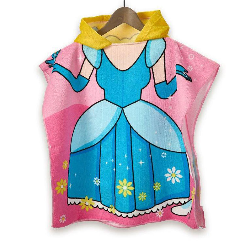 Παιδικό πόντσο σε γαλάζιο χρώμα, με ροζ λεπτομέρειες και σχέδιο πριγκίπισσα από την εταιρεία Whitegg. Έχει πετσετέ υφή και είναι κατασκευασμένο από 100% microfiber με απορροφητικά νήματα, που το καθιστούν απαλό στην αφή και ανθεκτικό στη χρήση.