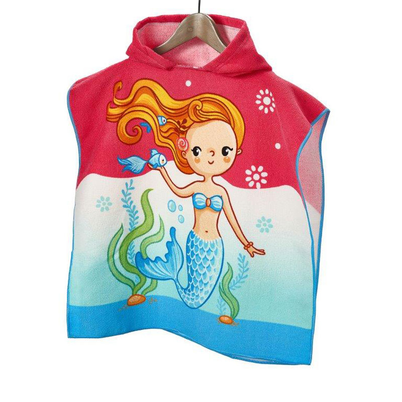 Παιδικό πόντσο σε πολύχρωμες αποχρώσεις και σχέδιο γοργόνα από την εταιρεία Whitegg. Έχει πετσετέ υφή και είναι κατασκευασμένο από 100% microfiber με απορροφητικά νήματα, που το καθιστούν απαλό στην αφή και ανθεκτικό στη χρήση.