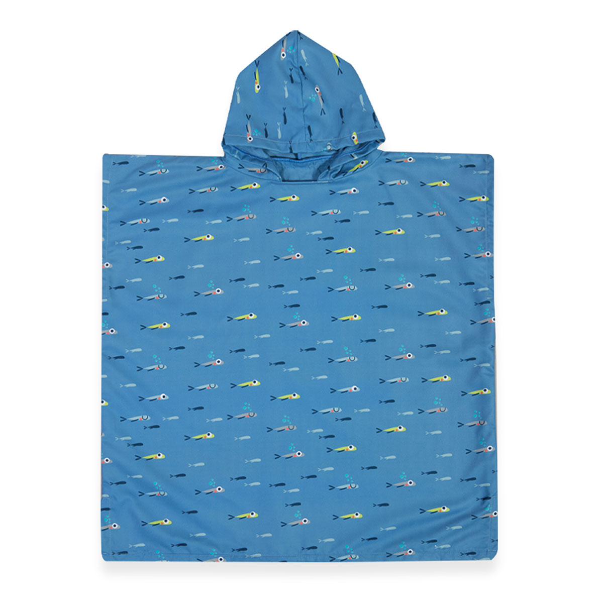Παιδικό πόντσο από την εταιρεία Nef-Nef σε μπλε χρώμα με ψαράκια στο σχέδιο. Είναι κατασκευασμένο από 100% microfiber βάρους 200gsm που το καθιστά απορροφητικό και απαλό. Στεγνώνει γρήγορα και διαθέτει κουκούλα. Ιδανικό για τις εμφανίσεις του παιδιού σας στην παραλία με ποιότητα και στυλ. Συνδυάστε το με τα υπόλοιπα είδη της ίδιας σειράς για ένα ολοκληρωμένο σετ. Η εταιρεία Nef-Nef διαθέτει πιστοποίηση Oeko-Tex, που εγγυάται ότι τα προϊόντα της είναι απαλλαγμένα από επιβλαβείς χημικές ουσίες.