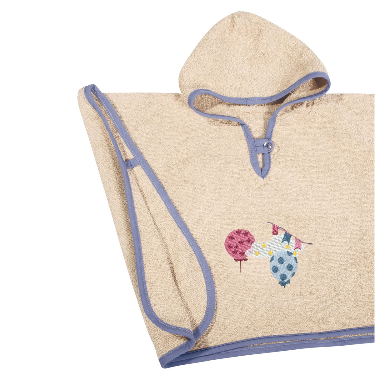 Παιδικό πόντσο από τον οίκο Greenwich Polo Club που προσφέρει ποιότητα, στυλ και πολυτέλεια. Κατασκευασμένο από υποαλλεργική 100% βαμβακερή πετσέτα 400 γραμ./τ.μ., απαλή στην αφή και ανθεκτική στη χρήση. Έχει κουκούλα, μοντέρνο κέντημα και κλείσιμο με κουμπί. Το χρώμα είναι εκρού χρώμα με λιλά ρέλι περιμετρικά.