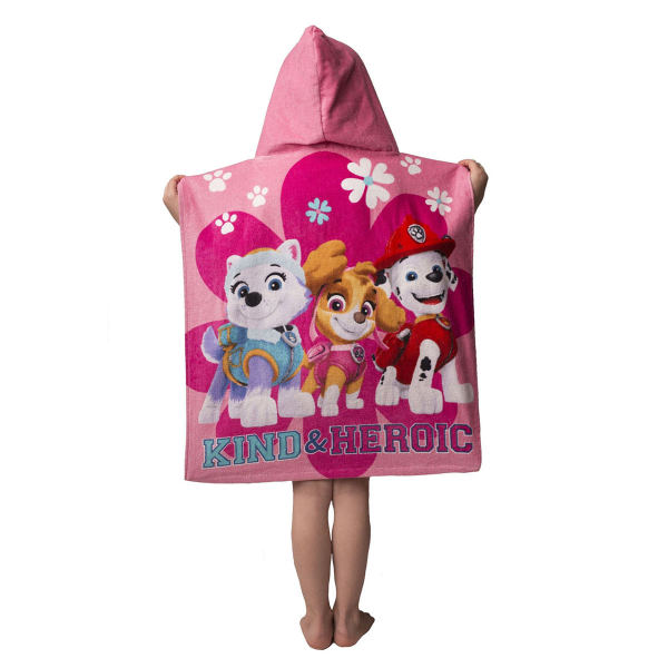 Παιδικό πόντσο για το μπάνιο του παιδιού σας στην μπανιέρα του σπιτιού ή την θάλασσα από την εταιρεία Viopros. Έχει σχέδιο με τους αγαπημένους ήρωες από το cartoon Paw Patrol σε ροζ αποχρώσεις με πολύχρωμες λεπτομέρειες. Είναι βελουτέ, κατασκευασμένο από 100% βαμβακερή πετσέτα βάρους 400gsm που προσφέρει απορροφητικότητα και απαλότητα.
