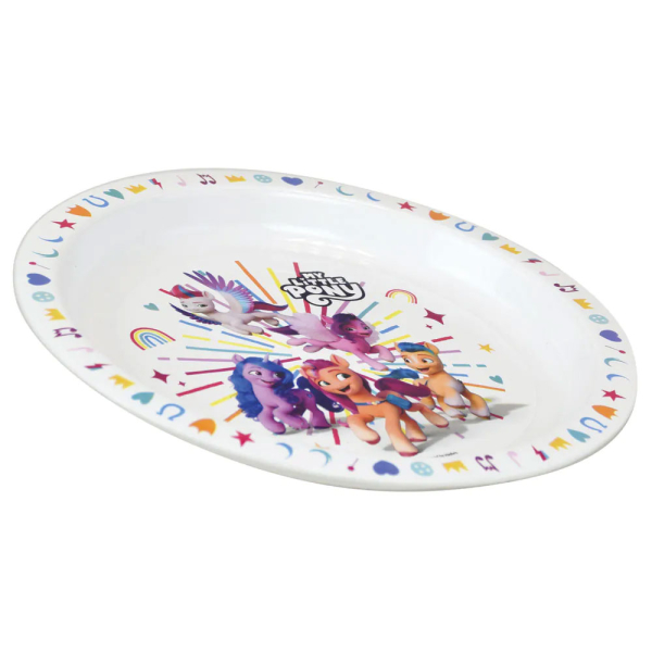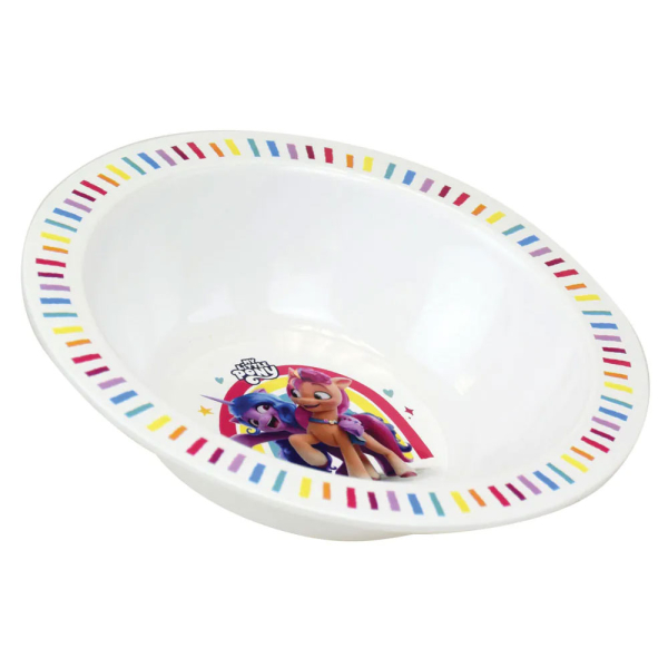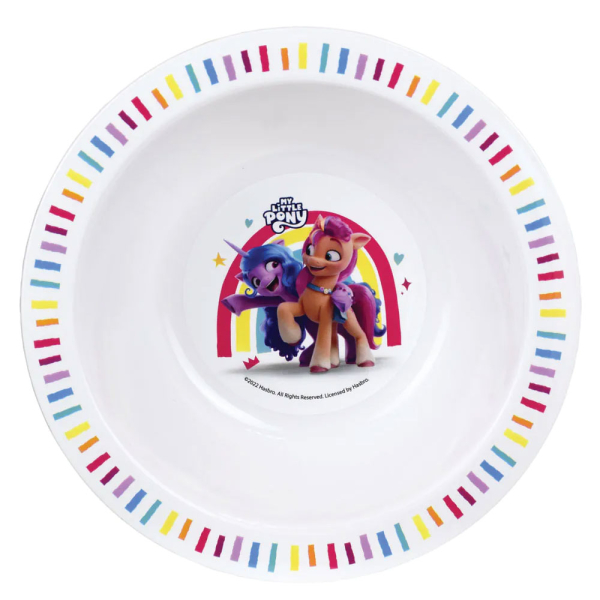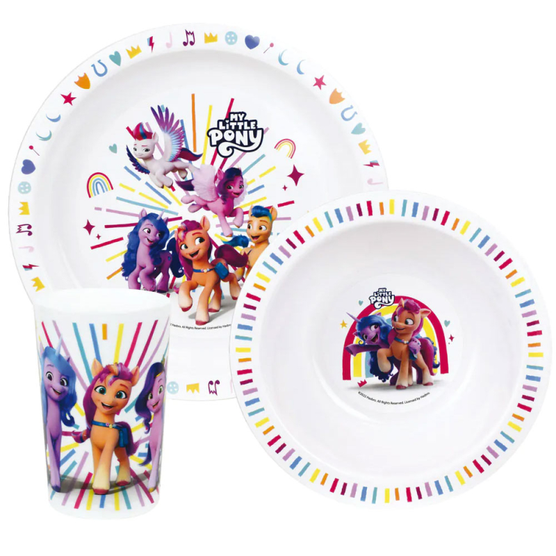 Σετ φαγητού 3 τεμαχίων από την εταιρεία Ango με λευκό φόντο και πολύχρωμες λεπτομέρειες. Έχουν σχέδιο με θέμα το My Little Pony, ανεξίτηλης εκτύπωσης. Χάρη στην ποιότητα κατασκευής τους από πολυπροπυλένιο χωρίς BPA, είναι ελαφριά, εύχρηστα και ασφαλή για το παιδί. Είναι ανθεκτικά στην καθημερινή χρήση, στις γρατζουνιές και στις πτώσεις, συνδυάζοντας πρακτικότητα και ασφάλεια κατά την διάρκεια του φαγητού. Αποτελούν ιδανική επιλογή για να ξεκινήσει το παιδί να τρώει μόνο του. Είναι κατάλληλα για φούρνο μικροκυμάτων και πλένονται άφοβα στο πλυντήριο πιάτων. Κατάλληλα για ηλικίες από 6 μηνών. Συσκευασία κουτί.