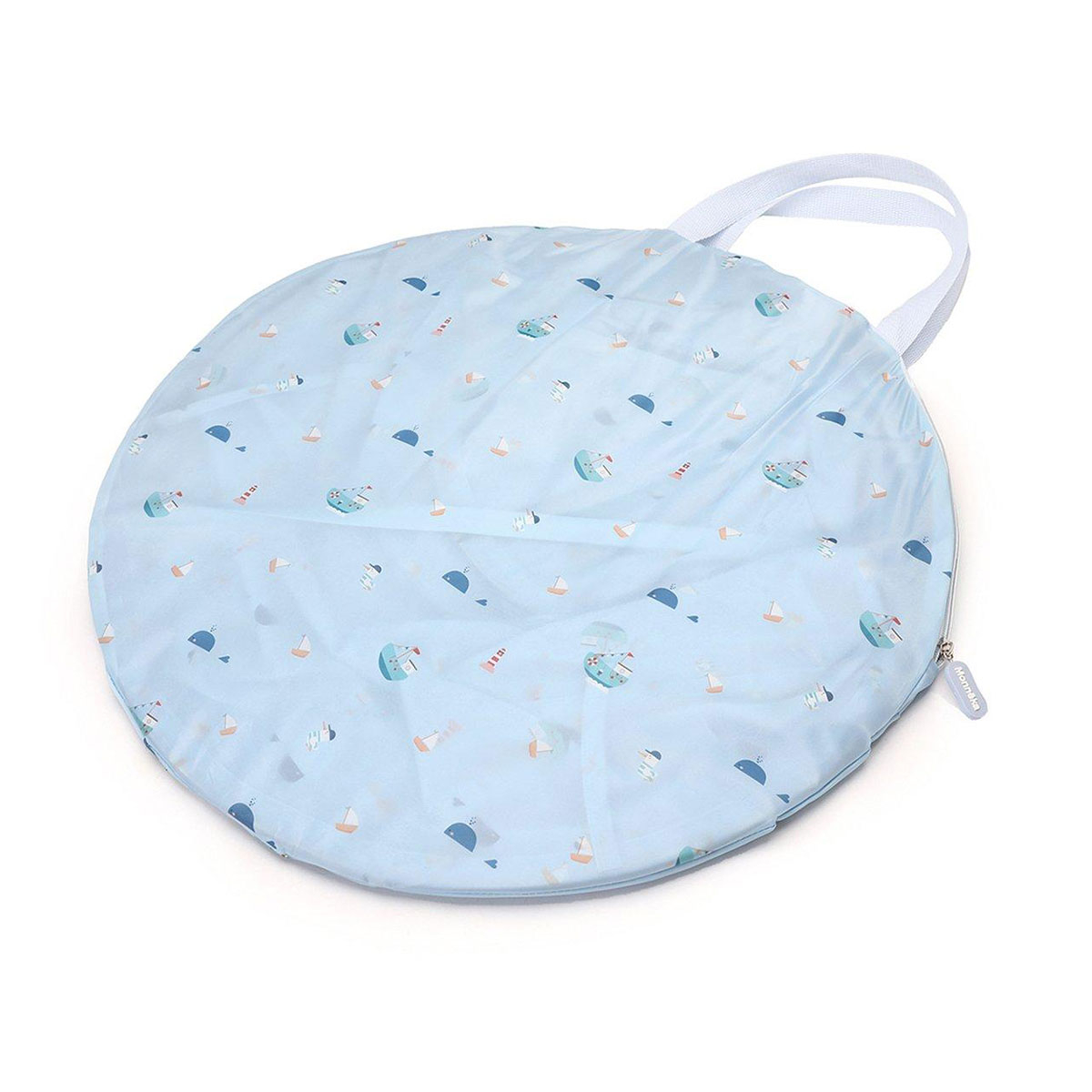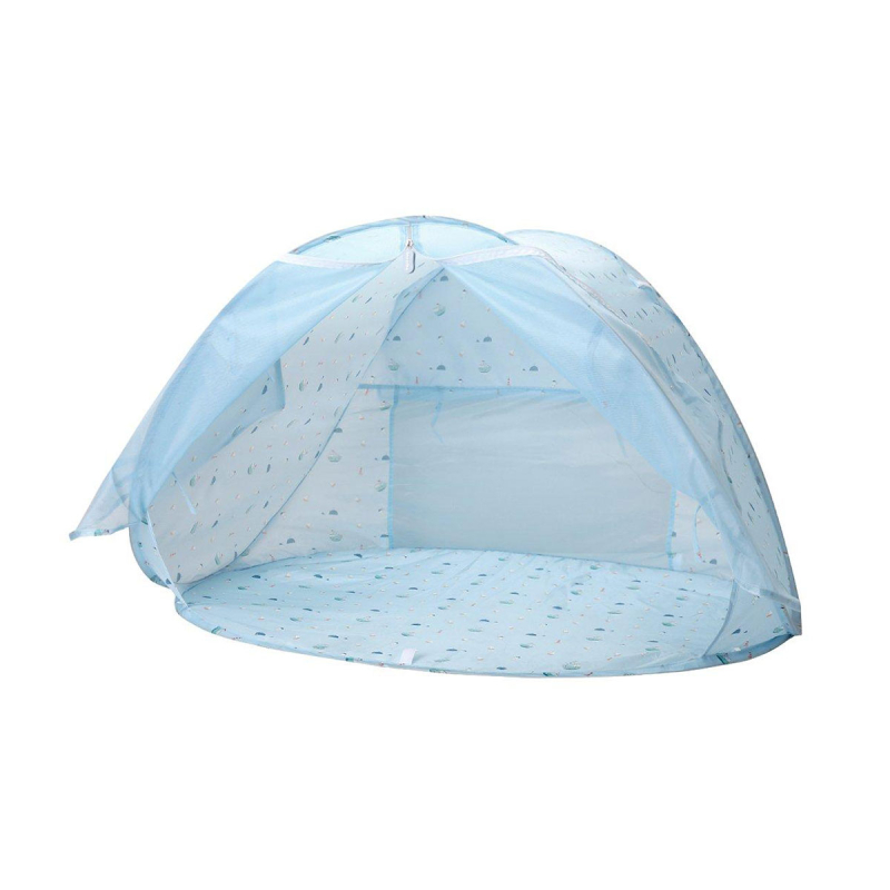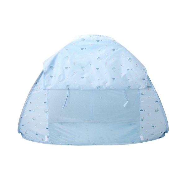 Σκηνή παραλίας για παιδιά σε γαλάζιο χρώμα, μοντέρνο σχέδιο και λευκές-μπεζ-βεραμάν-κόκκινες λεπτομέρειες από την εταιρεία Monneka. Το ύφασμά του είναι από 100% polyester με δείκτη προστασίας 50+UPF. Ο σκελετός του είναι από ανοξείδωτο χάλυβα που προσφέρει ανθεκτικότητα και σταθερότητα. Διαθέτει κουνουπιέρα με φερμουάρ στο μπροστινό μέρος για προστασία από τα έντομα και παράθυρο με κουρτίνες στο πίσω μέρος για απρόσκοπτο αερισμό. Χάρη στο σύστημα Pop-up στήνεται μόλις το βγάλετε από την τσάντα μεταφοράς. Παρέχει άφθονο χώρο στο παιδί για παιχνίδι ενώ ταυτόχρονα το προστατεύει από την επιβλαβή ακτινοβολία. Κατασκευασμένη σύμφωνα με το πρότυπο EN 13758-1:2001/A1:2006. Περιλαμβάνονται οδηγίες. Κατάλληλη για παιδιά 10+ μηνών.