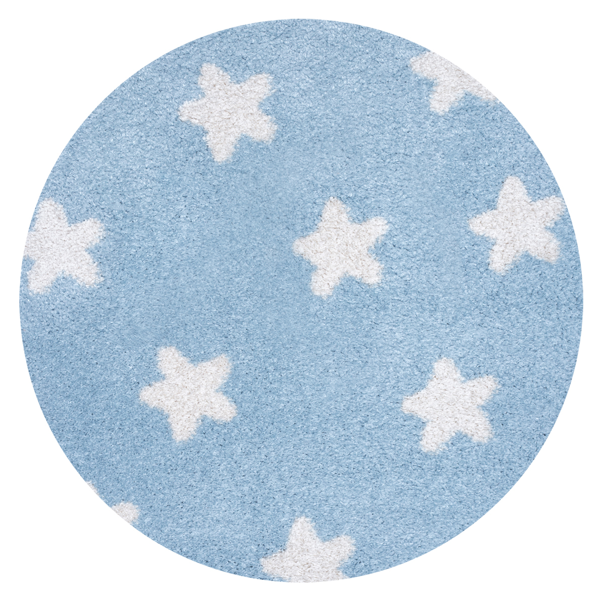 Στρογγυλό χαλί μηχανής shaggy με διάμετρο 160εκ. από τη συλλογή Cocoon της εταιρείας Colore Colori σε γαλάζια απόχρωση με λευκές λεπτομέρειες. Φέρει εντυπωσιακό παιδικό σχέδιο με αστέρια. Έχει στιβαρό και πυκνό πέλος ύψους 30mm, ενώ ξεχωρίζει για την απαλότητά του. Είναι ειδικά σχεδιασμένο για την σκληρή καθημερινή οικιακή χρήση και αποτελεί την ιδανικότερη λύση για παιδικά δωμάτια. Η σύνθεσή του είναι 100% polyester άριστης ποιότητας και το βάρος του είναι 1.845gsm. Η εξαιρετική επεξεργασία των νημάτων polyester του προσθέτει έξτρα δυνατότητες στην γρήγορη επαναφορά του πέλους και στην ανθεκτικότητα. Τα ανεξίτηλα νήματα έχουν αντιλεκιαστική προστασία και ιδιότητες τέτοιες ώστε να μην απορροφάται εύκολα κάθε είδους λεκές. Είναι αντιστατικό επομένως δεν μαγνητίζονται χνούδια, μικροσωματίδια και σκόνη στην επιφάνειά του, με αποτέλεσμα να είναι εύκολο και αποδοτικό το σκούπισμα με ηλεκτρική σκούπα. To υπόστρωμα χαλιού είναι γερά πλεγμένο, στην ίδια μηχανή κατασκευής, χωρίς πρόσθετα και κόλλες. Το χαλί είναι αντιαλλεργικό και η αντιβακτηριδιακή του προστασία εμποδίζει την ανάπτυξη αποικιών από ακάρεα, για μέγιστη προστασία της υγείας. Η συλλογή Cocoon έχει πιστοποίηση του Γερμανικού ινστιτούτου Oeko-Tex Standard 100 και πιστοποίηση 11.ΗΤΡ.94219 από το ινστιτούτο Hohenstein για την μη ύπαρξη ουσιών επιβλαβών προς την υγεία και τον οικολογικό προσανατολισμό της. Εγγύηση 2 ετών.