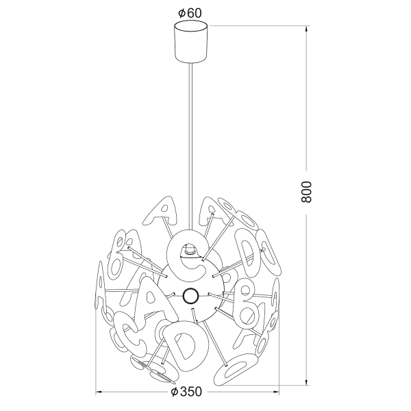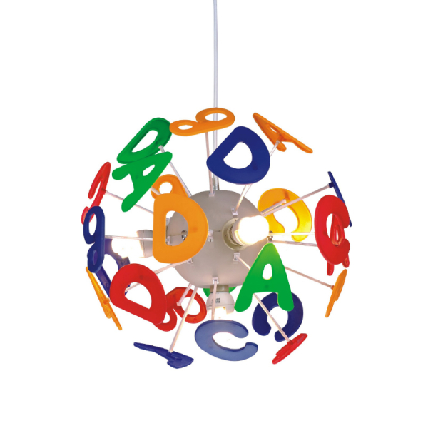 Παιδικό φωτιστικό της εταιρείας Aca Decor σε μοντέρνο στυλ και μοναδικό σχέδιο με πολύχρωμα γράμματα. Είναι κατάλληλο για βρεφικά και παιδικά δωμάτια, αλλά και χώρους παιχνιδιού, δραστηριοτήτων ή διαβάσματος. Είναι κατασκευασμένο από ακρυλικό και πλαστικό υλικό. Υπάρχει δυνατότητα αυξομείωσης του συνολικού ύψους έως 80εκ. μέσω του καλωδίου ανάρτησης, το οποίο είναι κατασκευασμένο από λευκό PVC. Η βάση τοποθέτησης είναι μεταλλική σε λευκό χρώμα. Ιδανικό για κορίτσια και αγόρια. Τύπος ντουί: 4xE14 και θέσεις για 4 λαμπτήρες έως 40W έκαστος (δεν συμπεριλαμβάνονται).