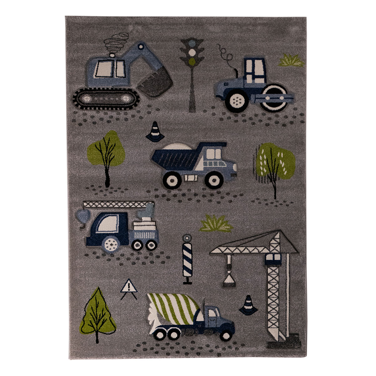Χαλί μηχανής 133x190 από τη σειρά Diamond της εταιρείας Tzikas Carpets σε γκρι φόντο με οχήματα σχέδιο. Ανθεκτικό χαλί στην σκληρή καθημερινή καταπόνηση από το παιδικό παιχνίδι. Είναι κατασκευασμένο με ανεξίτηλα νήματα από 100% frize heatset πολυπροπυλένιο. Το χαλί έχει βάρος 3.000gsm με πυκνότητα 288.000 κόμπους/τ.μ. και ύψος πέλους 13mm. Έχει ανάγλυφη επιφάνεια και το υπόστρωμά του είναι υφαντό. Είναι αντιστατικό άρα το σκούπισμα με ηλεκτρική σκούπα είναι εύκολο και αποτελεσματικό. Μπορεί να τοποθετηθεί στο παιδικό ή βρεφικό δωμάτιο. Τα χαλιά της εταιρείας Tzikas Carpets είναι υποαλλεργικά και φιλικά προς την υγεία. Έχουν πιστοποίηση του Γερμανικού ινστιτούτου Oeko-Tex Standard 100.