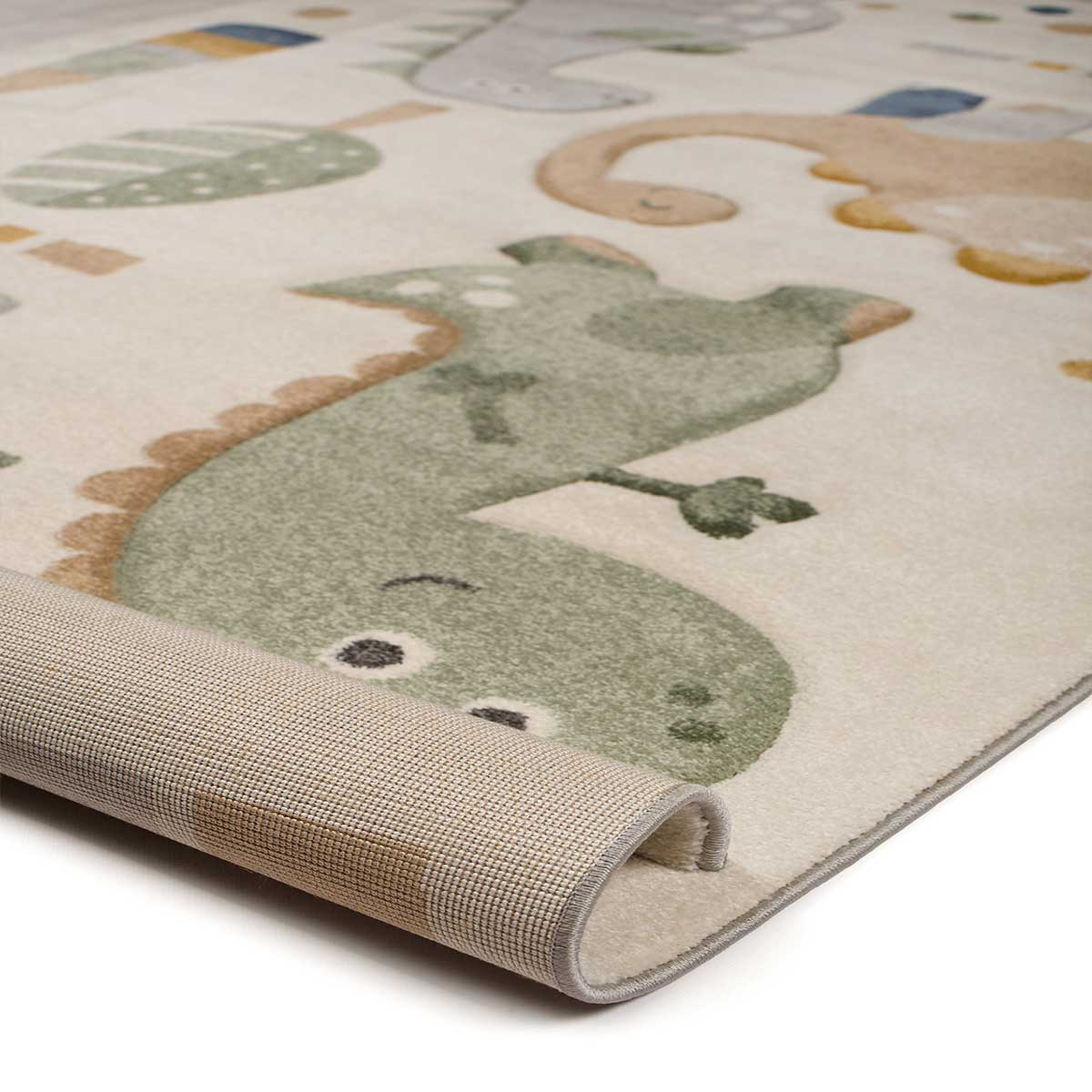 Χαλί μηχανής 140x200 από τη σειρά Yolo της εταιρείας Βιοκαρπέτ σε εκρού φόντο με πράσινες και ώχρα λεπτομέρειες. Έχει παιδικό σχέδιο με δεινόσαυρους. Ανθεκτικό χαλί στην σκληρή καθημερινή καταπόνηση από το παιδικό παιχνίδι. Είναι κατασκευασμένο με ανεξίτηλα frise νήματα από 100% πολυπροπυλένιο. Το βάρος του χαλιού είναι 2.900gsm, ενώ η πυκνότητά του ανέρχεται στους 288.000 κόμπους/τ.μ. Η απαλή και ανάγλυφη επιφάνεια του χαλιού σε συνδυασμό με το πέλος ύψους 13mm, εξασφαλίζουν μία μοναδική αίσθηση στο πάτημα. Διαθέτει υφαντό υπόστρωμα, που προσδίδει αντοχή στο χρόνο και τις πλύσεις. Είναι αντιστατικό επομένως δεν μαγνητίζονται χνούδια, μικροσωματίδια και σκόνη στην επιφάνεια του χαλιού, ενώ το σκούπισμα με ηλεκτρική σκούπα είναι εύκολο και αποτελεσματικό. Οι πρώτες ύλες των χαλιών Yolo είναι αυστηρά επιλεγμένες, η επεξεργασία τους προστατεύει από αλλεργίες και μύκητες. Φέρουν την υπογραφή της εταιρείας Βιοκαρπέτ για άριστη ποιότητα και αξιοπιστία. *Είναι κατάλληλο για ενδοδαπέδια θέρμανση* ***Μέρος των εσόδων από τις πωλήσεις της παιδικής σειράς Yolo διατίθεται στο Make-A-Wish, (Κάνε-Μια-Ευχή Ελλάδος).***
