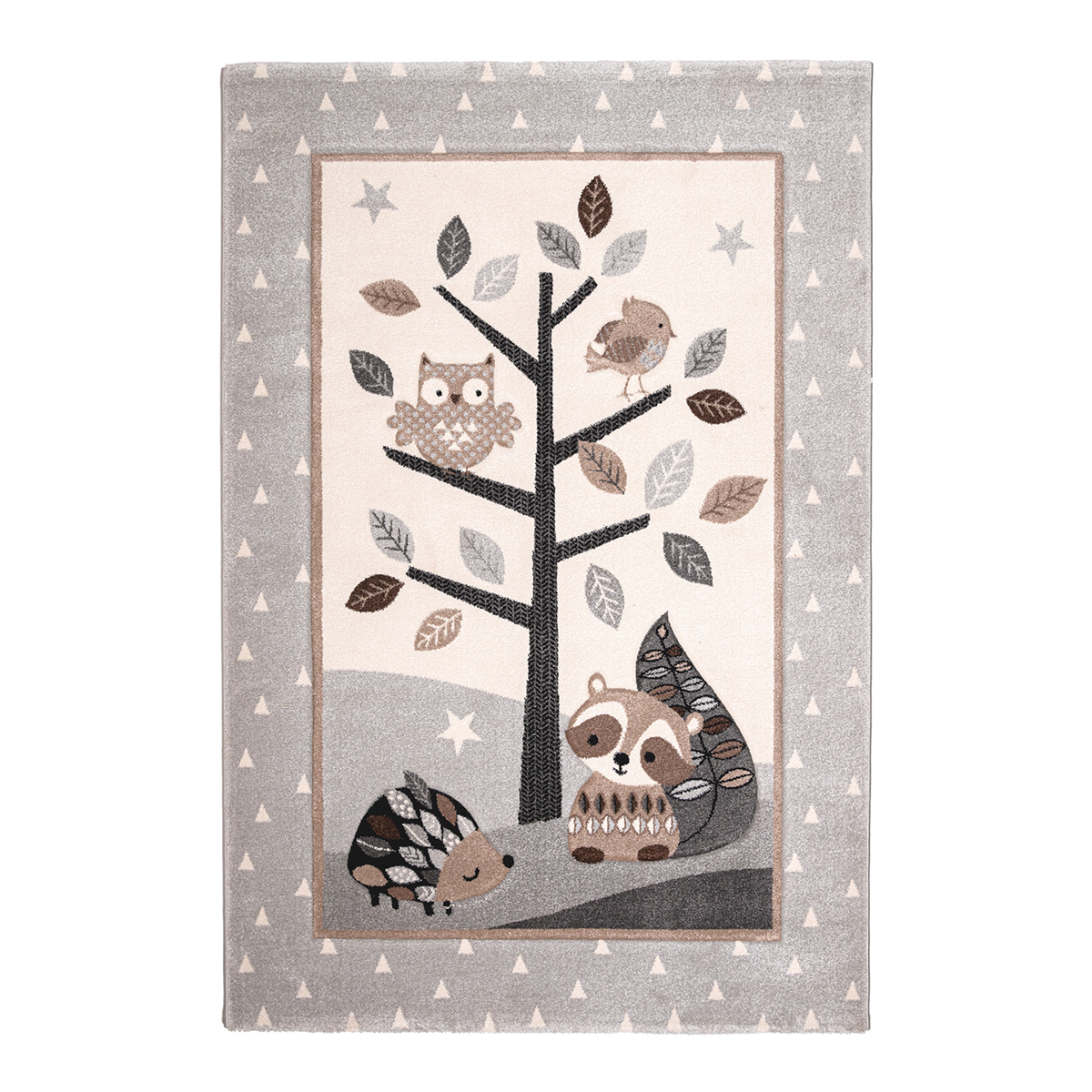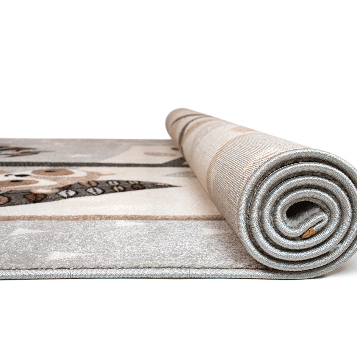 Μηχανοποίητο χαλί 160x230 από τη σειρά Yolo της εταιρείας Βιοκαρπέτ σε γκρι και εκρού αποχρώσεις με μπεζ και καφέ λεπτομέρειες. Φέρει εντυπωσιακό παιδικό σχέδιο με ζωάκια. Ανθεκτικό χαλί στην σκληρή καθημερινή καταπόνηση από το παιδικό παιχνίδι. Είναι κατασκευασμένο με ανεξίτηλα frise νήματα από 100% πολυπροπυλένιο. Το βάρος του χαλιού είναι 2.900gsm, ενώ η πυκνότητά του ανέρχεται στους 288.000 κόμπους/τ.μ. Η απαλή και ανάγλυφη επιφάνεια του χαλιού σε συνδυασμό με το πέλος ύψους 13mm, εξασφαλίζουν μία μοναδική αίσθηση στο πάτημα. Διαθέτει υφαντό υπόστρωμα, που προσδίδει αντοχή στο χρόνο και τις πλύσεις. Είναι αντιστατικό επομένως δεν μαγνητίζονται χνούδια, μικροσωματίδια και σκόνη στην επιφάνεια του χαλιού, ενώ το σκούπισμα με ηλεκτρική σκούπα είναι εύκολο και αποτελεσματικό. Οι πρώτες ύλες των χαλιών Yolo είναι αυστηρά επιλεγμένες, η επεξεργασία τους προστατεύει από αλλεργίες και μύκητες. Φέρουν την υπογραφή της εταιρείας Βιοκαρπέτ για άριστη ποιότητα και αξιοπιστία. *Είναι κατάλληλο για ενδοδαπέδια θέρμανση* ***Μέρος των εσόδων από τις πωλήσεις της παιδικής σειράς Yolo διατίθεται στο Make-A-Wish, (Κάνε-Μια-Ευχή Ελλάδος).***