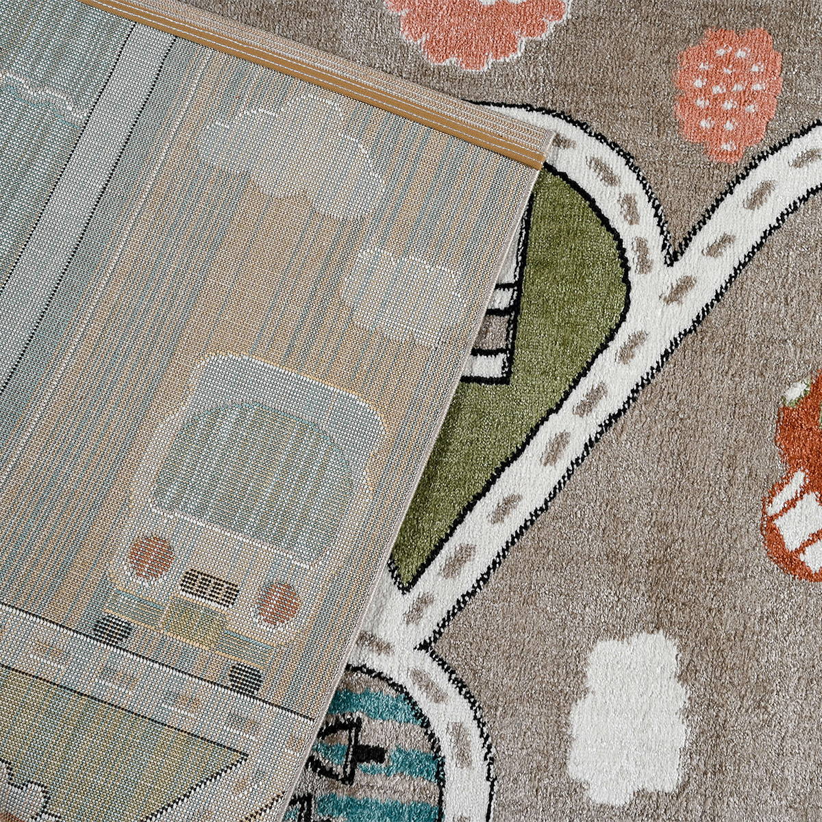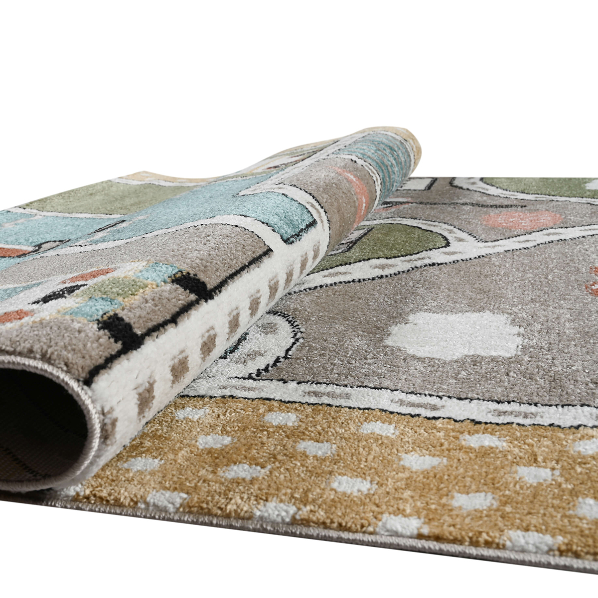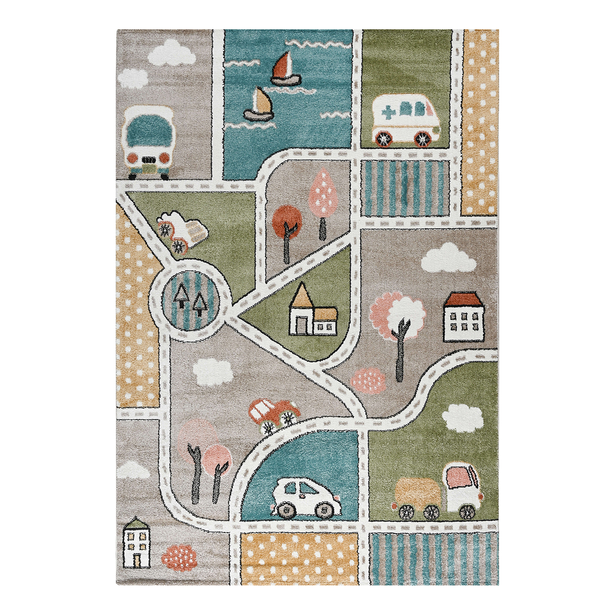 Μηχανοποίητο χαλί 160x230 από την συλλογή Carousel Dream της εταιρείας Polcarpet. Πρόκειται για ιδιαίτερα απαλό χαλί με πολύχρωμο παιδικό σχέδιο με χωριό και αυτοκινητόδρομο. Είναι ιδανικό να διακοσμήσει τα παιδικά υπνοδωμάτια, καθώς και οποιοδήποτε χώρο παιχνιδιού και παιδικών δραστηριοτήτων. Αποτελεί ανθεκτικό χαλί στην σκληρή καθημερινή καταπόνηση από το παιδικό παιχνίδι και τις πολλές πλύσεις. Είναι κατασκευασμένο με ανεξίτηλα νήματα σύνθεσης 100% soft heatset πολυπροπυλένιο. Το χαλί έχει βάρος 1.800gsm και πυκνότητα 180.000 κόμπους/τ.μ. Το μαλακό πέλος ύψους 8mm και η ανάγλυφη επιφάνειά του σας προσφέρει μία μοναδική αίσθηση στο πάτημα. Διαθέτει υφαντό υπόστρωμα, το οποίο σε συνδυασμό με τα heatset νήματά του αυξάνουν την αντοχή και τη διάρκεια ζωής του χαλιού. Είναι αντιστατικό επομένως δεν μαγνητίζονται χνούδια, μικροσωματίδια και σκόνη στην επιφάνειά του, ενώ το σκούπισμα με ηλεκτρική σκούπα είναι εύκολο και αποτελεσματικό. Ο καθαρισμός του χαλιού είναι εύκολος, καθώς είναι πλενόμενο σύμφωνα πάντα με τις οδηγίες του προμηθευτή. Τα χαλιά της εταιρείας Polcarpet είναι υποαλλεργικά και αντιβακτηριδιακά. Έχουν ελεγχθεί για τον οικολογικό τους χαρακτήρα καθώς και για την πλήρη απουσία επιβλαβών για την υγεία ουσιών. Φέρουν τις πιστοποιήσεις Standard 100 Oeko-Textiles και ISO 9001. Πρόκειται για προϊόντα ασφαλή για την υγεία και φιλικά προς το περιβάλλον και τα κατοικίδια.