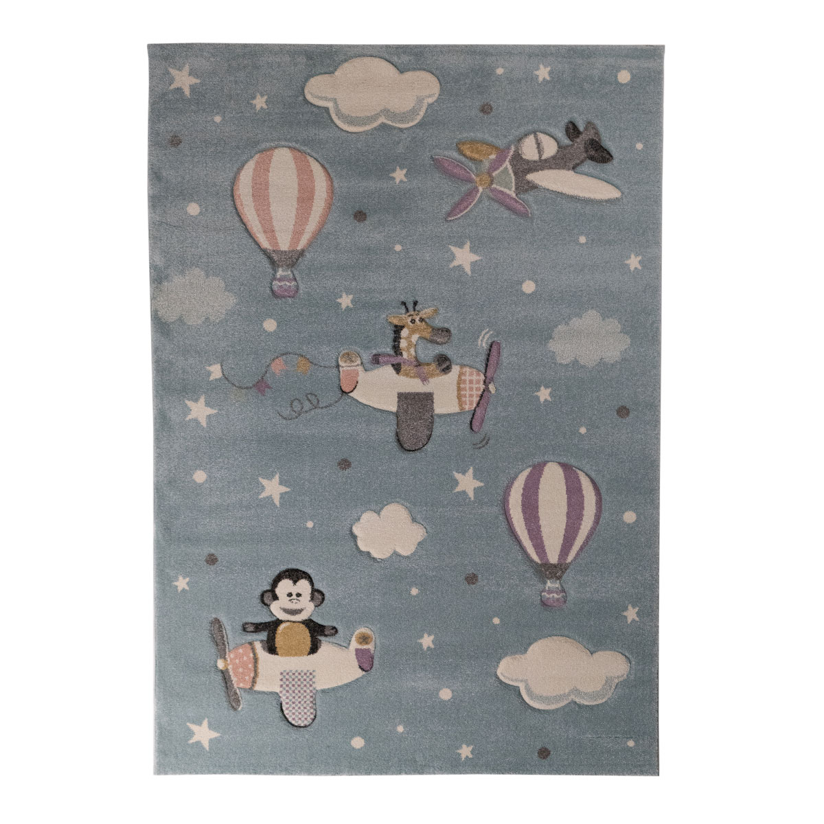 Χαλί μηχανής 160x230 από τη σειρά Diamond της εταιρείας Tzikas Carpets σε γαλάζιο φόντο με πολύχρωμες λεπτομέρειες και ζωάκια στο σχέδιο. Ανθεκτικό χαλί στην σκληρή καθημερινή καταπόνηση από το παιδικό παιχνίδι. Είναι κατασκευασμένο με ανεξίτηλα νήματα από 100% frize heatset πολυπροπυλένιο. Το χαλί έχει βάρος 3.000gsm με πυκνότητα 288.000 κόμπους/τ.μ. και ύψος πέλους 13mm. Έχει ανάγλυφη επιφάνεια και το υπόστρωμά του είναι υφαντό. Είναι αντιστατικό άρα το σκούπισμα με ηλεκτρική σκούπα είναι εύκολο και αποτελεσματικό. Μπορεί να τοποθετηθεί στο παιδικό ή βρεφικό δωμάτιο. Τα χαλιά της εταιρείας Tzikas Carpets είναι υποαλλεργικά και φιλικά προς την υγεία. Έχουν πιστοποίηση του Γερμανικού ινστιτούτου Oeko-Tex Standard 100.