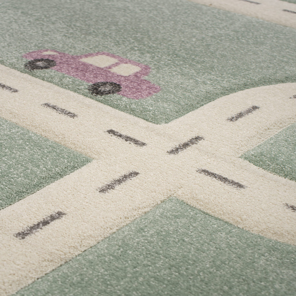 Χαλί μηχανής 200x290 από τη σειρά Yolo της εταιρείας Βιοκαρπέτ σε πράσινο χρώμα με λευκές, μωβ και κίτρινες λεπτομέρειες. Έχει εντυπωσιακό παιδικό σχέδιο με αυτοκινητόδρομο και αυτοκινητάκια. Ανθεκτικό χαλί στην σκληρή καθημερινή καταπόνηση από το παιδικό παιχνίδι. Είναι κατασκευασμένο με ανεξίτηλα frise νήματα από 100% πολυπροπυλένιο. Το βάρος του χαλιού είναι 2.900gsm, ενώ η πυκνότητά του ανέρχεται στους 288.000 κόμπους/τ.μ. Η απαλή και ανάγλυφη επιφάνεια του χαλιού σε συνδυασμό με το πέλος ύψους 13mm, εξασφαλίζουν μία μοναδική αίσθηση στο πάτημα. Διαθέτει υφαντό υπόστρωμα, που προσδίδει αντοχή στο χρόνο και τις πλύσεις. Είναι αντιστατικό επομένως δεν μαγνητίζονται χνούδια, μικροσωματίδια και σκόνη στην επιφάνεια του χαλιού, ενώ το σκούπισμα με ηλεκτρική σκούπα είναι εύκολο και αποτελεσματικό. Οι πρώτες ύλες των χαλιών Yolo είναι αυστηρά επιλεγμένες, η επεξεργασία τους προστατεύει από αλλεργίες και μύκητες. Φέρουν την υπογραφή της εταιρείας Βιοκαρπέτ για άριστη ποιότητα και αξιοπιστία. *Είναι κατάλληλο για ενδοδαπέδια θέρμανση* ***Μέρος των εσόδων από τις πωλήσεις της παιδικής σειράς Yolo διατίθεται στο Make-A-Wish, (Κάνε-Μια-Ευχή Ελλάδος).***