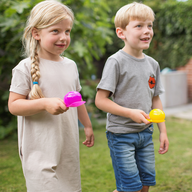 Σετ παιχνίδια από την εταιρία Bs Toys ιδανικά για να γίνουν ακόμα πιο διασκεδαστικά τα παιδικά πάρτι! Στο σετ περιλαμβάνονται 4 πολύχρωμα ανθεκτικά τσουβάλια με χερούλια για τσουβαλομαχίες, 4 πολύχρωμα πλαστικά κουτάλια, 4 πολύχρωμα αυγά, 4 πολύχρωμα σακουλάκια για ρίψεις (τα οποία μπορούν να μπουν και μέσα στα αυγά), 4 πλαστικοί πάσσαλοι για σημάδια, πλαστικά ποτηράκια αλλά και σημαία έναρξης/τερματισμού. Με αυτό το σετ παιχνιδιών, τα παιδικά πάρτι πλέον θα γίνονται ακόμη πιο διασκεδαστικά. Ιδανικά για παιχνίδια τσουβαλομαχίες, αυγομαχίες, κουταλοδρομίες και πολλά άλλα.