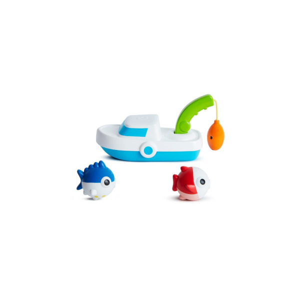 Παιχνίδια μπάνιου σετ από την εταιρεία Munchkin σε πολύχρωμα χρώματα. Είναι κατασκευασμένα από πλαστικό υλικό χωρίς BPA. Το σετ περιλαμβάνει ένα πλωτό σκάφος ψαρέματος με μαγνητικό πλωτήρα, 2 μαγνητικά ψάρια και 1 μαγνητικό καλάμι. Είναι ένα εκπαιδευτικό παιχνίδι καθώς ενθαρρύνει το συντονισμό χεριών και ματιών. Επίσης, είναι ένα παιχνίδι επίλυσης προβλημάτων και βοηθά στην απόκτηση αυτοπεποίθησης. Κατάλληλο για ηλικίες 2 ετών και άνω.