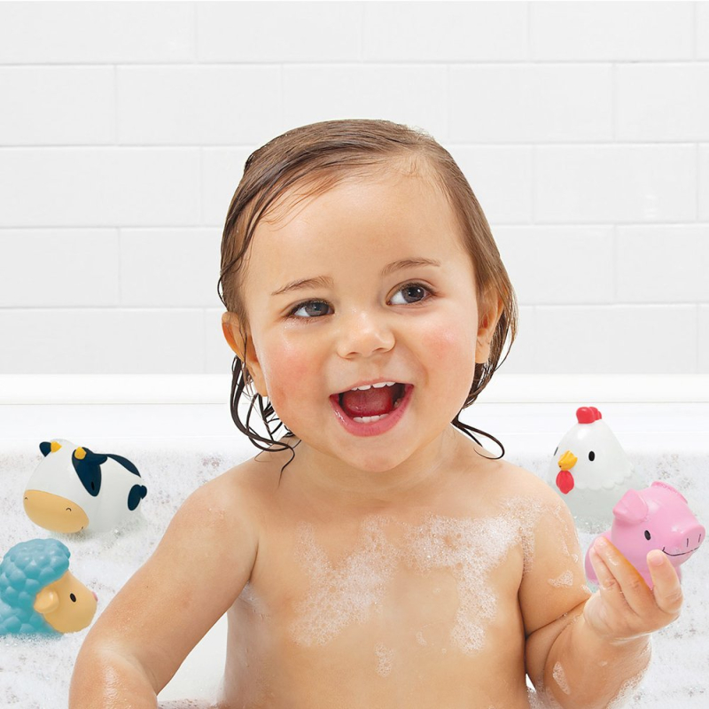 Παιχνίδια μπάνιου της εταιρείας Munchkin που μετατρέπουν την μπανιέρα σε φάρμα. Στη συσκευασία περιλαμβάνονται 4 διασκεδαστικά ζωάκια κατασκευασμένα από πλαστικό υλικό, που πιτσιλάνε και επιπλέουν. Βοηθούν το μωρό σας να αναπτύξει κινητικές ικανότητες και να μάθει τα ονόματα και τους ήχους των ζώων. Έχουν κατάλληλο μέγεθος για τα μικρά χεράκια, ώστε να μπορεί να τα πιάνει και να τα πιέζει. Επιπλέον, είναι ανθεκτικά, δεν ξεφτίζουν και δεν σπάνε. Ρίξτε τα στην μπανιέρα και γνωρίστε μαζί τους νέες περιπέτειες. Κατάλληλα για ηλικίες 9+ μηνών.