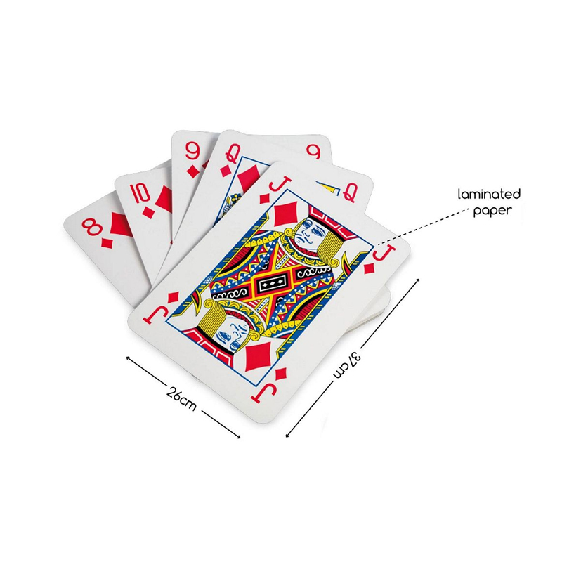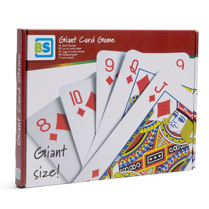 Παιχνίδι δραστηριότητας από την εταιρία Bs Toys. Περιλαμβάνονται 52 γιγάντιες κάρτες τράπουλας. Μπορείτε να παίξετε κανονικά όλα τα παιχνίδια αλλά ακόμη και να αυτοσχεδιάσετε παιχνίδια. Είναι κατασκευασμένες από πλαστικοποιημένο χαρτί για παιχνίδι και σε εξωτερικούς χώρους.