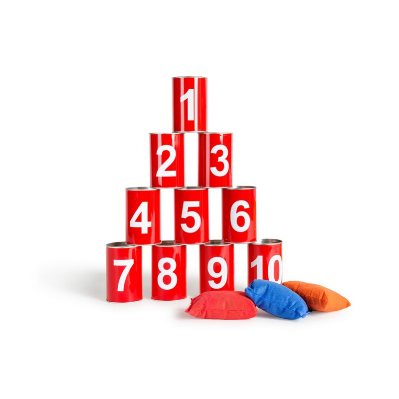 Παιχνίδι ρίψης στόχων αποτελούμενο από 10 μεταλλικά τενεκεδάκια και 3 σακούλες για ρίψεις, από την εταιρία Bs Toys. Τοποθετήστε τα τενεκεδάκια σε μορφή πυραμίδας και με τα σακουλάκια, προσπαθήστε να τα πετύχετε όλα! Συνδυάζει συγχρονισμό των άκρων, συγκέντρωση και πολλή διασκέδαση και είναι κατάλληλο για ηλικίες 3+ ετών. Το κάθε τενεκεδάκι διαθέτει και έναν αριθμό για να σας βοηθούν να μετράτε τους πόντους.