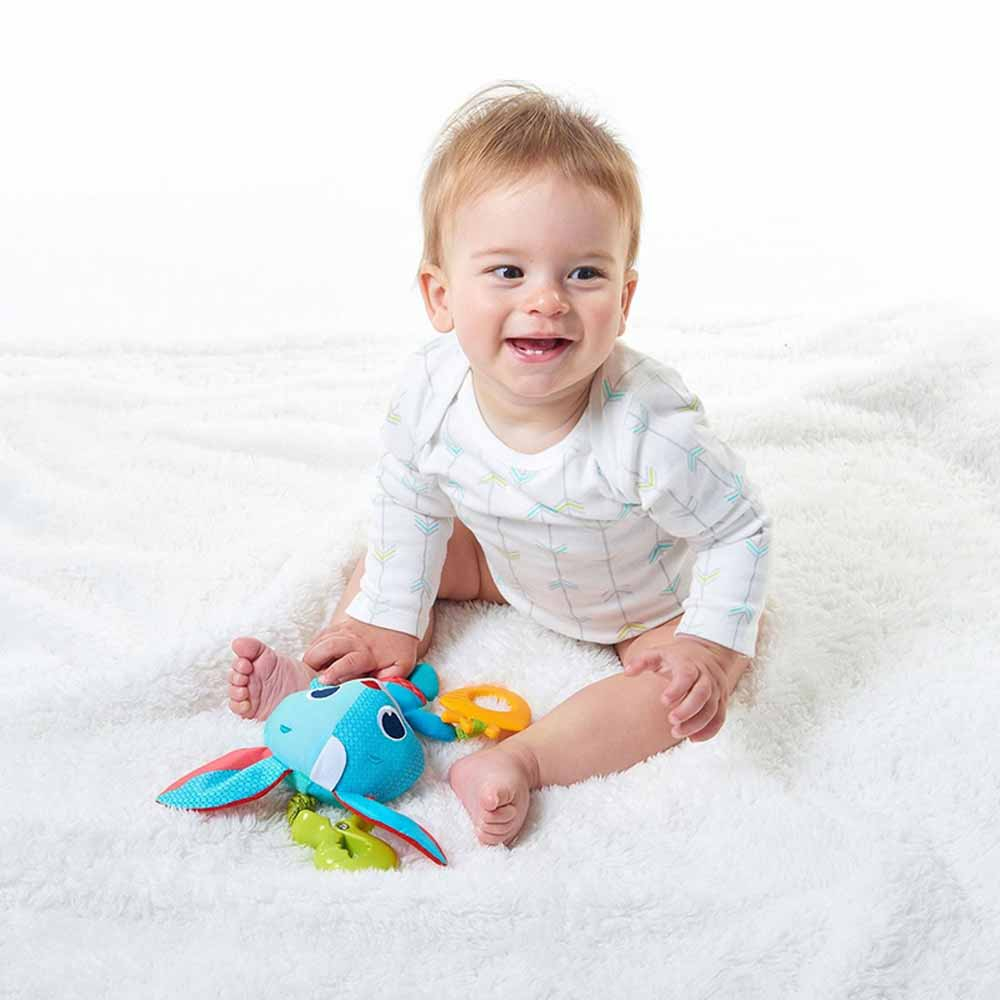 Παιχνίδι της Tiny Love κατάλληλο από νεογέννητο. Πιο συγκεκριμένα: 0-2 μήνες: Κρατήστε το παιχνίδι κοντά σ το πρόσωπο του μωρού σας και, αφού το βλέμμα του επικεντρωθεί στο παιχνίδι, σιγά-σιγά το μετακινείται από τη μια πλευρά στην άλλη. 2-4 μήνες: Κρεμάστε το παιχνίδι σε απόσταση που μπορεί να φτάσει το μωρό, ώστε να τεντώσει το χέρι τους για να αγγίξει το παιχνίδι, προκαλώντας τη μετακίνησή του. 4-6 μήνες: Το αντανακλαστικό πιασίματος του μωρού εξαφανίζεται και βελτιώνεται ο χειρισμός του χεριού, επιτρέποντας στο μικρό σας να φτάσει με αυτοπεποίθηση και να τραβήξει το παιχνίδι. Χρησιμοποιήστε το κλιπ για να κρεμάσετε το παιχνίδι παντού όπως στο καροτσάκι, το κάθισμα αυτοκινήτου ή το πορτ μπεμπέ. Clip-on παιχνιδιού με ανατροφοδοτούμενη κίνηση που διεγείρει τις αισθήσεις και βοηθά στην ανάπτυξη των κινητικών δεξιοτήτων. Γενικά Χαρακτηριστικά: Κατασκευασμένο με βασικά χρώματα υψηλής αντίθεσης ιδιαίτερα κατάλληλα για μικρά μωρά. Clip on για εύκολη προσάρτηση. Περιλαμβάνει μασητικό παιχνίδι. Ποικιλία παιχνιδιάρικων, μαλακών και τριζάτων υφασμάτων. Διαστάσεις: 17Μx6Πx39Υ.