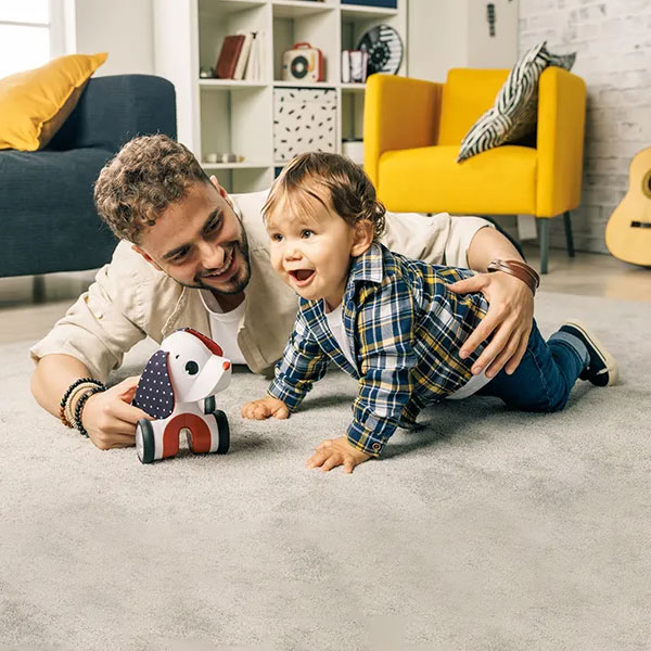 Τρεχαλίτσα από την εταιρεία Tiny Love σε σχήμα σκυλάκι. Είναι κατασκευασμένο από πλαστικό υλικό. Το ευέλικτο σώμα του Charlie εμπνέει τα μωρά να πειραματιστούν με διάφορους τρόπους παιχνιδιού. Η αντίδραση της κίνησης και το γλυκό γαύγισμα διδάσκουν στα μωρά την έννοια της αιτίας και του αποτελέσματος. Το παιχνίδι κινείται όταν το χτυπήσουν. Παίζει μουσική ενώ κινείται, γαυγίζει όταν πιέζεται η μύτη και διαθέτει κουμπί On/Off. Κατάλληλο από 3+ μηνών. Λειτουργεί με 3 μπαταρίες AAA (δεν περιλαμβάνονται).